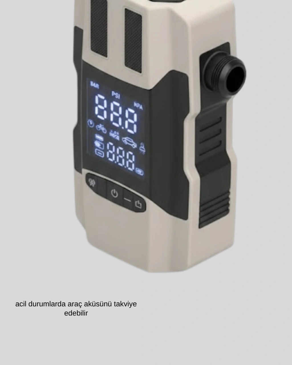 Araç kullanıcıları için geliştirilen bu cihaz, yolculuk sırasında karşılaşılabilecek acil durumlar için ideal bir yardımcıdır. Entegre lastik şişirme pompası sayesinde manuel pompalara ihtiyaç duymazsınız. Akü takviye özelliği, zayıflamış aküleri çalıştırmaya yardımcı olur. 12.000 mAh batarya kapasitesi ile telefon ve diğer elektronik cihazlar powerbank olarak şarj edilebilir. Dijital gösterge, kullanım sırasında hassas kontrol sağlar.