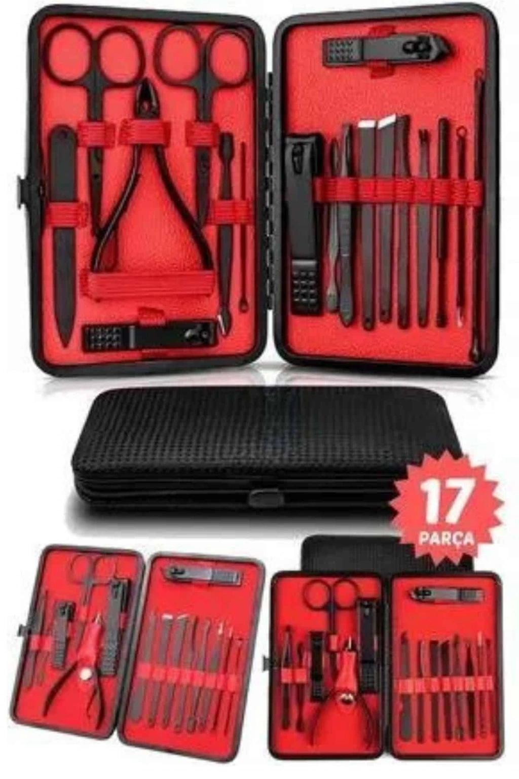 Profesyonel bakım deneyimini evinize taşıyan 17 parçalık bu özel manikür seti, el ve ayak bakımınızı zahmetsizce yapmanız için ihtiyacınız olan tüm araçları bir araya getiriyor. Paslanmaz çelikten üretilmiş parçaları sayesinde dayanıklı ve hijyenik bir kullanım sunan bu set, güvenli sterilizasyon sağlar, kolay temizlenir ve korozyona karşı dirençlidir. Yeni nesil siyah kaymaz parlatma teknolojisi ile geliştirilmiş keskin yapısı, kavramayı kolaylaştırarak daha rahat kullanım imkanı sunar. Şık deri kaplama kutusu, tek tuşla açılabilir ve tüm parçaların düzenli bir şekilde saklanmasını sağlar. Hafif ve taşınabilir tasarımıyla çantanızda rahatça taşıyabilir, seyahatlerde yanınızda bulundurabilirsiniz. Büyük, küçük ve sivri uçlu tırnak makasları, törpü, cımbız, pedikür bıçakları, tırnak kaldırma aparatı, kulak temizleme aparatı gibi birçok farklı aparat içeren bu set, hem günlük kullanım için ideal hem de mükemmel bir hediye seçeneğidir.