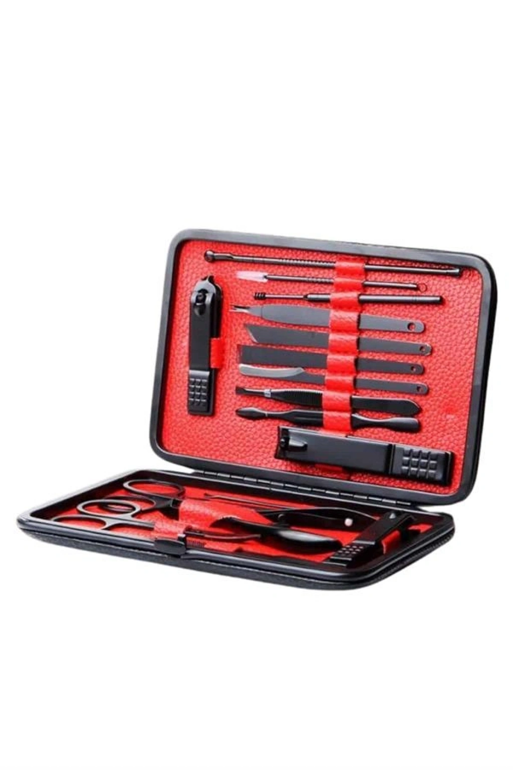 Kendi el ve ayak bakımınızı profesyonel düzeyde yapmak isteyenler için tasarlanan bu 17 parçalık manikür seti, yüksek kaliteli paslanmaz çelik malzemeden üretilmiştir. Dayanıklı ve hijyenik yapısıyla kolay temizlenebilir, uzun ömürlüdür ve korozyona karşı koruma sağlar. Yeni nesil siyah kaymaz parlatma teknolojisi, hem estetik bir görünüm sunar hem de aletlerin kavranmasını ve kullanılmasını kolaylaştırır. Özel tasarımlı deri kaplama kutusu, tüm parçaları düzenli bir şekilde saklamanıza olanak tanırken, hafif ve taşınabilir yapısıyla seyahatlerinizde de yanınızda bulundurabilirsiniz. Büyük, küçük ve sivri uçlu tırnak makasları, törpü, cımbız, çeşitli pedikür bıçakları, tırnak kaldırma aleti ve kulak temizleme aparatı gibi geniş bir içeriğe sahip bu set, bakımınızı zahmetsiz ve pratik hale getirir. Kendiniz veya sevdikleriniz için şık ve fonksiyonel bir hediye alternatifi olarak da tercih edebilirsiniz.