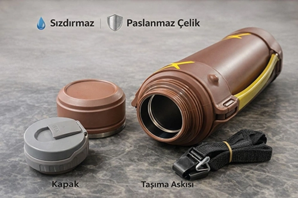 2500 ML ÇİFT KATMANLI VAKUMLU PASLANMAZ ÇELİK TERMOS Ürün ÖzellikleriSınırları zorlayan maceralar ve uzun süreli grup aktiviteleri için en büyük yardımcınızla tanışın! 2500 ml Çift Katmanlı Vakumlu Paslanmaz Çelik Termos, devasa 2.5 litrelik iç hacmiyle en uzun kamplarda ve kalabalık pikniklerde bile sıvı ihtiyacınızı fazlasıyla karşılar. Yüksek kaliteli paslanmaz çelikten üretilen çift katmanlı gövdesi ve vakumlu ısı yalıtım teknolojisi, içeceklerinizin ısısını saatlerce koruyarak ilk anki tazeliğini muhafaza eder. 40x14 cm boyutlarındaki heybetli yapısı, outdoor şartlarına uygun ekstra dayanıklı dış kaplama ve ergonomik taşıma koluyla donatılmıştır. Sızdırmaz iç kapak sistemi ve bardak fonksiyonu gören dış kapağı sayesinde pratik bir kullanım sunar. Profesyonel kampçılar, şantiye çalışanları ve uzun yol seyahatleri için tasarlanan bu termos, kapasite ve performansı bir arada sunan zirve modeldir.Ürün Teknik ÖzellikleriÖzellikAçıklamaHacim2500 ml (2.5 Litre)Boyutlar40 cm (Yükseklik) x 14 cm (Çap)MalzemePaslanmaz Çelik (Çift Katmanlı Vakumlu Gövde)Yalıtım Teknolojisiİleri Seviye Vakum İzolasyonu (Sıcak & Soğuk Koruma)Kapak ÖzelliğiBardak Olarak Kullanılabilen Dış Kapak + Kilitli İç KapakTaşımaErgonomik ve Sağlam Sabit Taşıma SapıRenk SeçeneğiGörseldeki Renklerden Karışık GönderilmektedirPaket İçeriği1 Adet 2500 ml Çift Katmanlı Vakumlu Paslanmaz Çelik Termos.