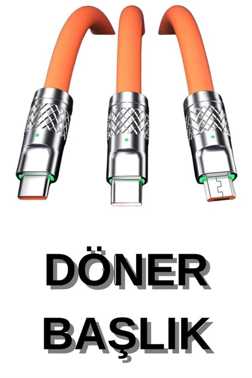 Nevamel 3 İn 1 Süper Hızlı Şarj Kablosu Android ve İOS Uyumlu Silikon Şarj Kablosu