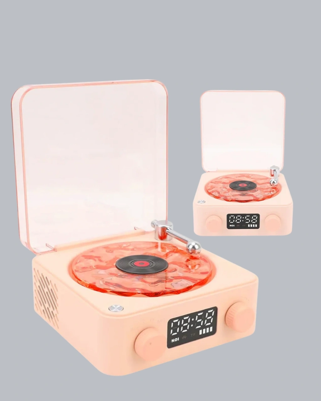 Dekoratif ve teknolojik özellikleri tek cihazda buluşturan bu 3-ü-1 çok fonksiyonlu hoparlör, hem estetik hem işlevsellik arayan kullanıcılar için ideal bir çözümdür. Ürün; gece lambası, Bluetooth hoparlör ve dijital saat özelliklerini aynı tasarım içerisinde sunarak çok yönlü kullanım sağlar. Cihazın en dikkat çeken detaylarından biri, gövdesindeki şeffaf su dalgası efektli LED ışık tasarımıdır. Bu ışık, odada yumuşak bir ambiyans yaratarak kullanıcılara rahatlatıcı bir atmosfer sunar. Özellikle uyku öncesi rahatlamak, loş bir ışıkta dinlenmek veya dekoratif bir aydınlatma eklemek isteyenler için mükemmeldir.Bluetooth hoparlör özelliği, yüksek kaliteli stereo ses performansı ile öne çıkar. Tizlerin net, basların güçlü olması sayesinde müzik dinlemek çok daha keyifli hale gelir. Ürün, tüm Bluetooth destekli cihazlarla kolayca eşleşebilir ve stabil bağlantı sayesinde müzik sırasında kopma veya gecikme yaşanmaz. Kompakt boyutuna rağmen sunduğu güçlü ses çıkışı, ürünün en sevilen özelliklerinden biridir.Dijital saat ekranı ise cihazın fonksiyonelliğini artıran pratik bir detaydır. Zamanı rahatça takip edebilir, pil seviyesini anlık olarak görebilirsiniz. Böylece cihazın kullanım süresini kontrol altında tutarak günlük rutinde daha verimli şekilde kullanabilirsiniz. Başucunda kullanıldığında ışık, saat ve müziğin tek cihazdan yönetilmesi büyük bir rahatlık sağlar.Vintage plak çalardan ilham alınan şık tasarımı, ürünü bulunduğu ortama dekoratif bir obje olarak da kazandırır. Şeffaf yapısı, minimal çizgileri ve modern-retro birleşimiyle hem oturma odasında hem yatak odasında hem de ofiste estetik bir tamamlayıcı görevi görür. Kompakt ve taşınabilir yapısı sayesinde cihazı farklı alanlara kolayca taşıyabilirsiniz.Hem ambiyans ışığı hem kaliteli hoparlör hem de dijital saat arayan kullanıcılar için bu çok yönlü 3-ü-1 cihaz, modern evlerin vazgeçilmez parçalarından biri olmaya adaydır.
