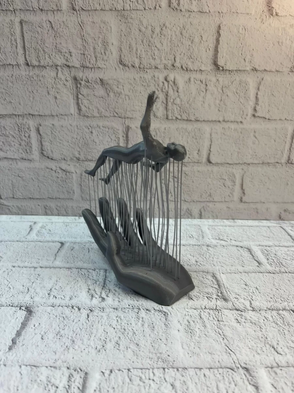 Modern sanat anlayışını yansıtan 3D El Formlu İnsan Figürü Gri, dekorasyona sofistike bir dokunuş ekler. El formu üzerinde konumlanan insan figürü, soyut duruşu ile anlamlı ve estetik bir kompozisyon oluşturur.Gri rengi, mekânda sade ama güçlü bir etki yaratır. Kitaplık, raf, konsol veya masa üstünde sergilendiğinde bulunduğu alanın havasını değiştirir. Minimal ve modern ev dekorasyonu sevenler için ideal bir dekoratif biblodur.