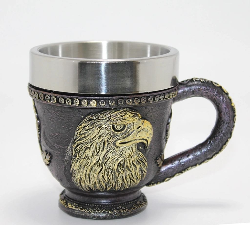 Nevamel® 3D Kabartmalı Kartal Büstü Paslanmaz Çelik Kupa Bardak