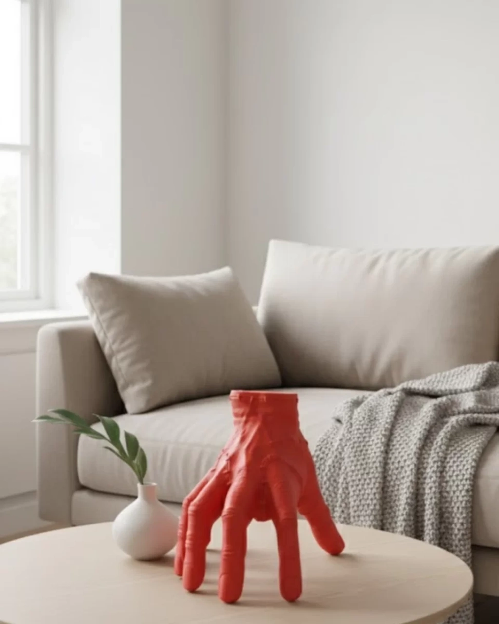 3D Kırmızı El Dekor 17x16 cm modeli, sıradan dekorasyon anlayışının dışına çıkmak isteyenler için tasarlanmış özgün bir tasarım objesidir. Güçlü formu ve canlı kırmızı rengi sayesinde bulunduğu ortamda hemen dikkat çeker.Kitaplık raflarında kitap aralarına yerleştirildiğinde sanatsal bir hava oluşturur. Şömine üzerinde kullanıldığında dramatik bir ambiyans yaratır. Çalışma masasında ise yaratıcı bir atmosfer sağlar.17x16 cm ideal ölçüleri sayesinde hem kompakt hem de etkileyici bir boyuttadır. Aşırı yer kaplamaz ancak bulunduğu alanın karakterini tamamen değiştirir.Modern, gotik, Halloween temalı veya konsept dekorasyonlarda mükemmel bir tamamlayıcıdır. Ev hediyesi olarak da farklı ve unutulmaz bir seçenektir.