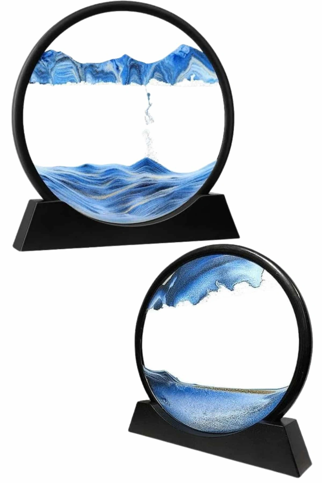 Mavi tonlarının huzur verici etkisini estetik bir sanat eseriyle birleştiren bu 3D LED ışıklı hareketli kum tablosu, ev ve ofis dekorasyonunda fark yaratmak isteyenler için mükemmel bir tercihtir. İçerisinde yer alan özel formüllü sıvı ve renkli kumların yer çekimiyle yavaşça aşağı doğru süzülmesiyle oluşan doğal desenler, her an değişen ve tekrar etmeyen bir görsel şölen sunar. İzledikçe rahatlatan bu hareket, hem zihinsel gevşeme sağlar hem de bulunduğu ortama modern bir sanat dokunuşu katar.Yedi inçlik ideal boyutuyla hem masa üstü kullanımına uygundur hem de dikkat çekici bir görsel sunar. LED aydınlatması, kumun akışını gece dahi keyifle izleyebilmenizi sağlarken, aynı zamanda hoş bir gece lambası işlevi de görür. Enerji verimli LED teknolojisi sayesinde uzun süreli kullanımlarda bile ekonomik bir tercih sunar.Dekoratif özelliği sayesinde yatak odası, salon, çalışma odası veya resepsiyon alanı gibi farklı mekanlarda rahatlıkla kullanılabilir. Ayrıca iş yeri hediyesi, yeni ev hediyesi ya da sevdiklerinize anlamlı ve estetik bir sürpriz olarak da değerlendirilebilir. İçeriğindeki kaliteli malzeme ve dayanıklı dış yapı, ürünün uzun ömürlü kullanımına olanak tanır.Sanatla teknolojinin uyumlu birleşimini yaşamak ve her bakışta farklı duygular hissettiren bir atmosfer yaratmak isteyenler için tasarlanmış bu ürün, hem görsel hem işlevsel açıdan beklentilerin ötesine geçer. Dinamik bir sanat eseri olarak öne çıkan bu LED ışıklı kum saati tablo, yaşam alanlarınıza estetik bir değer katmanın pratik ve etkileyici yoludur.Paket İçeriği:1 adet mavi renk 3D LED ışıklı hareketli kum sanatı gece lambası – dekoratif tablo.
