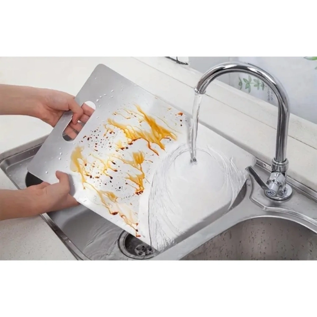 3'LÜ PASLANMAZ ÇELİK KESME TAHTASI SETİ Ürün ÖzellikleriPaslanmaz çelikten üretilmiş olan bu kesme tahtası seti, mutfağınız için ideal bir seçimdir. 3 farklı boyutta sunulan tahtalar, her ihtimale karşı kullanım kolaylığı sağlar. Leke tutmaz, sağlıklıdır ve hijyenik özelliklere sahiptir. Ayrıca paslanmaz özelliği sayesinde uzun ömürlüdür ve yıllarca kullanılabilir.Kesme tahtaları antibakteriyel özelliklere sahip olup, gıda zehirlenmesini önler. Elde veya bulaşık makinasında kolayca yıkanabilir. Farklı boyut seçenekleriyle, sebze, meyve, et gibi farklı malzemeleri rahatça kesebilirsiniz.Paket İçeriği1 Adet 33 x 22.5 cm Boyutunda Paslanmaz Çelik Kesme Tahtası1 Adet 28 x 19.5 cm Boyutunda Paslanmaz Çelik Kesme Tahtası1 Adet 24.5 x 15 cm Boyutunda Paslanmaz Çelik Kesme Tahtası