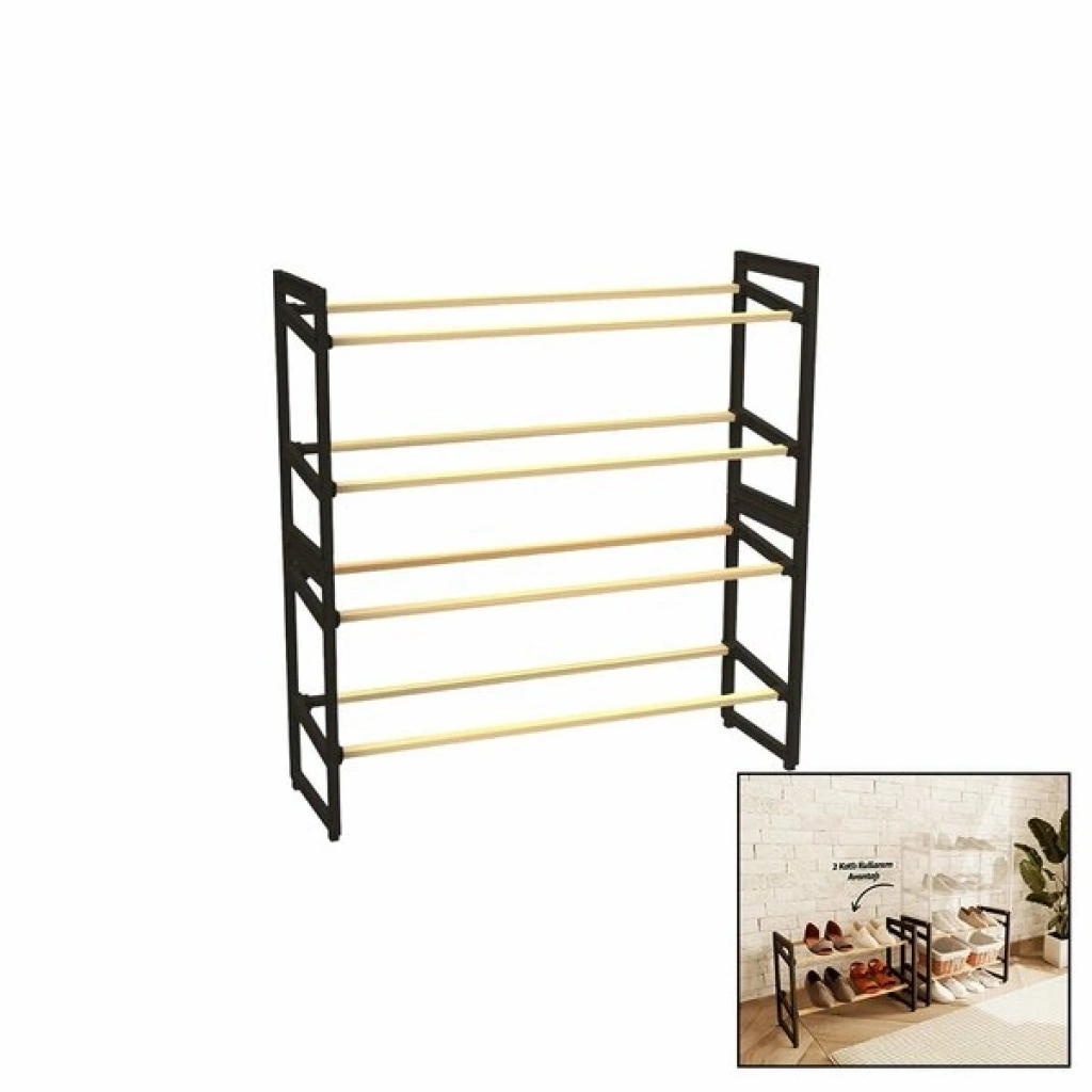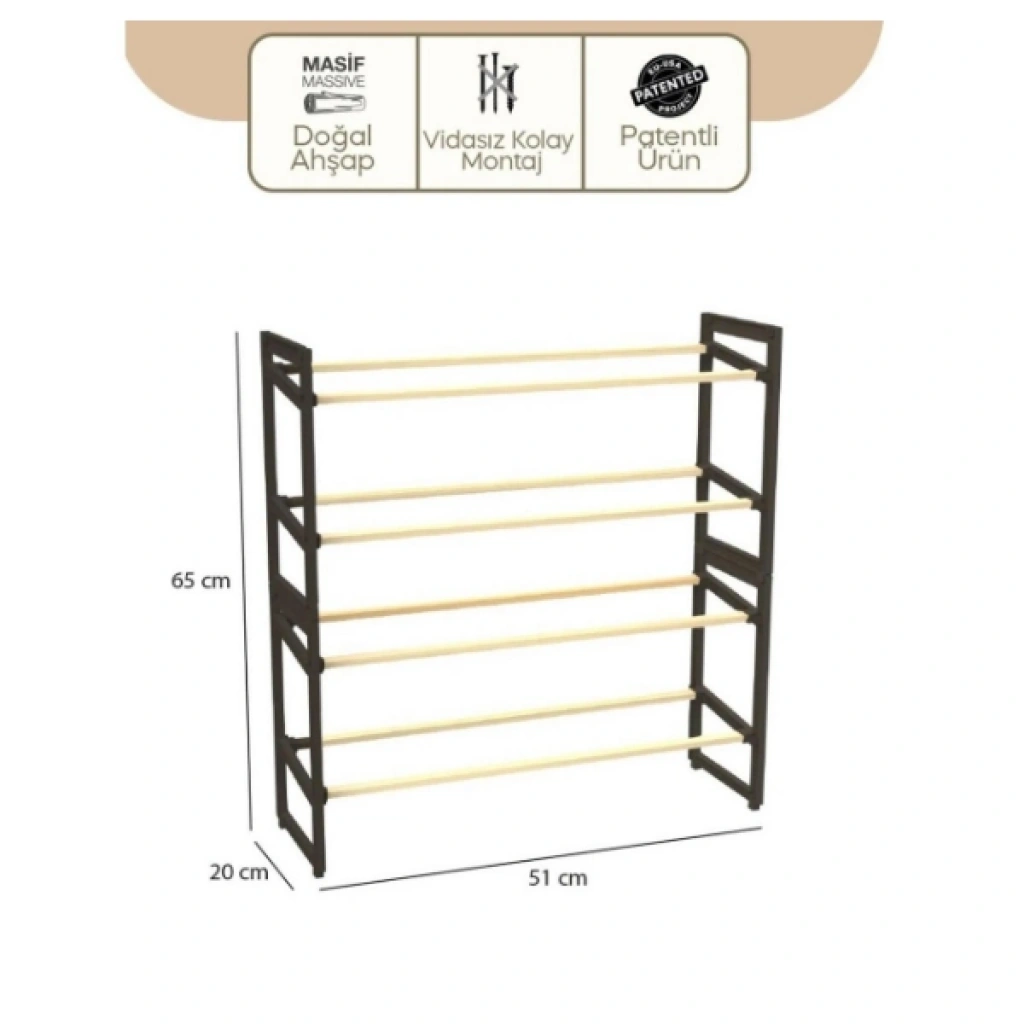 ChatGPT:4 KATLI AHŞAP AYAKKABILIKÜrün Özellikleri4 katlı ahşap ayakkabılık, şık ve modern tasarımıyla evinizin düzenini kolayca sağlamanıza yardımcı olur. 20x65x51 cm boyutundaki kompakt yapısı sayesinde az yer kaplar ve dar alanlarda bile rahatlıkla kullanılabilir. Hem ayakkabılık hem de çok amaçlı raf olarak değerlendirilebilen bu ürün, portatif yapısıyla kolay taşınabilir. Vidasız pratik montaj özelliği sayesinde ekstra bir alete gerek kalmadan hızlıca kurulabilir. Hem dört raflı olarak hem de ayrı ayrı 2 katlı iki ayakkabılık olarak kullanma avantajı sunar.Ahşap rafları ve sağlam metal yan profilleri dayanıklı kullanım sunarken, dekoratif görünümüyle evinize estetik bir hava katar. Hem giriş alanlarında hem de balkon, yatak odası veya kiler gibi farklı mekânlarda düzen sağlamak için idealdir.Paket İçeriği1 adet 4 Katlı Ahşap Ayakkabılık 1 adet 4 Katlı Ahşap Ayakkabılık