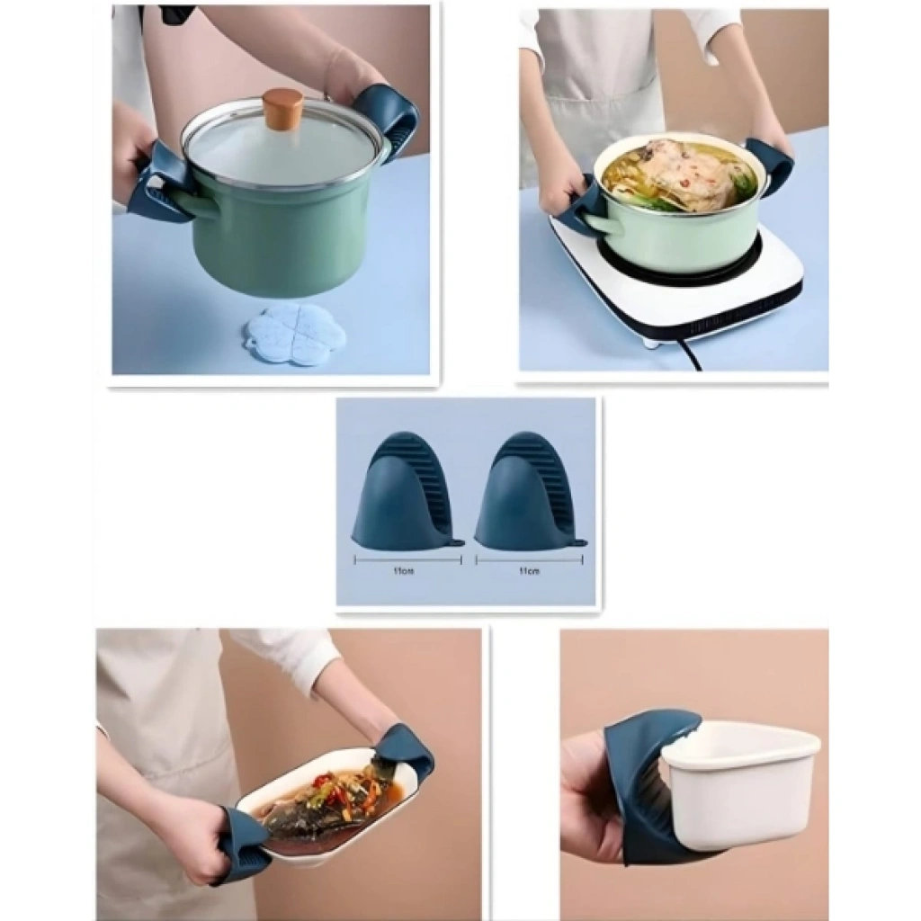 4 PARÇA YANMA ÖNLEYİCİ MUTFAK SETİ - TENCERE TABAK TUTUCU VE FIRIN ELDİVENİÜrün Özellikleri4 parça yanma önleyici mutfak seti, mutfakta güvenli ve pratik kullanım sunar. Isıya dayanıklı silikon ve paslanmaz çelik malzemeden üretilmiştir. Setin içinde bulunan tencere ve tabak tutucu sayesinde sıcak kapları kolayca kavrayabilir, fırın eldivenleri ile elinizi yüksek ısıdan koruyabilirsiniz. Kaymaz yüzeyi sayesinde elden kayma riskini azaltır ve güvenli taşıma sağlar. Geniş kullanım alanına sahip olan bu set, tabak, tencere, tava ve kase gibi çeşitli mutfak gereçlerinde rahatlıkla kullanılabilir. Şık ve ergonomik tasarımı sayesinde hem ev kullanımı hem de profesyonel mutfaklar için idealdir. Bulaşık makinesinde yıkanabilir ve uzun ömürlü yapısıyla mutfakta vazgeçilmez bir yardımcıdır.Paket İçeriği1 adet metal tencere tutucu, 1 adet metal tabak tutucu, 2 adet silikon fırın eldiveni2 adet silikon bulaşık fırçası