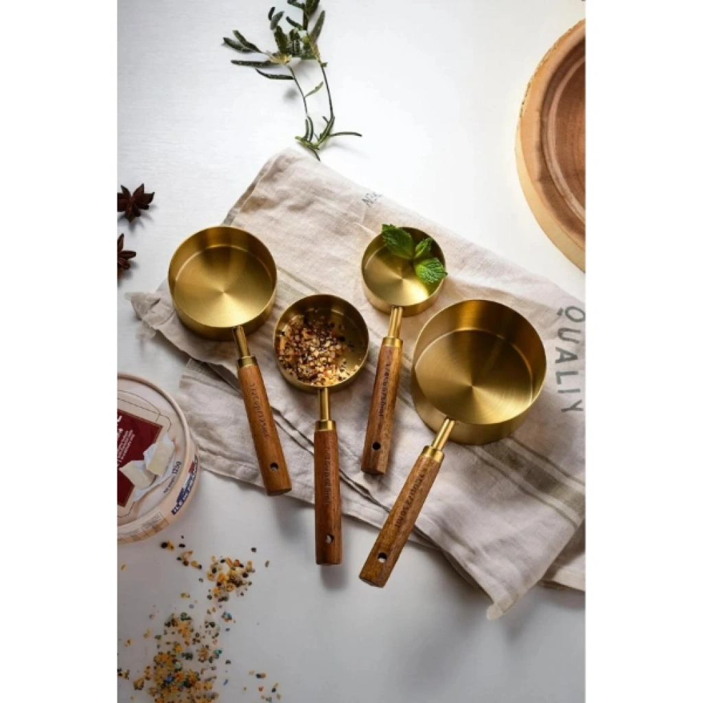 4'LÜ AHŞAP SAPLI ÖLÇÜ KAŞIĞIÜrün ÖzellikleriBu 4'lü ahşap saplı ölçü kaşığı seti, mutfakta ölçü almak için ideal bir çözümdür. Metal kısmı şık altın rengindedir, ahşap sapları ise ergonomik olup rahat bir kullanım sağlar. Farklı boyutlarda 4 ölçü kaşığından oluşan bu set, her türlü yemek tarifinde doğru ölçüleri almanıza yardımcı olur. Estetik tasarımı, mutfakta şıklık yaratır. Her bir kaşık, dayanıklı malzemelerle üretilmiştir ve uzun süreli kullanım için uygundur.Paket İçeriği4 Adet Ahşap Saplı Ölçü Kaşığı