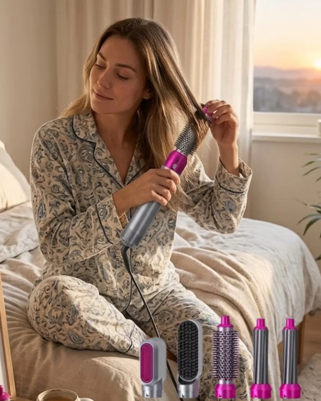 Saç şekillendirme deneyimini pratik ve profesyonel hale getiren 5 in 1 saç şekillendirici set, çok yönlü kullanımı ile günlük hayatın vazgeçilmez yardımcılarından biri haline gelir. Tek cihaz ile birden fazla işlem yapabilme özelliği sayesinde kullanıcıya büyük kolaylık sağlar.Güçlü 1000W motoru sayesinde hızlı ısınma özelliğine sahip olan cihaz, kısa sürede kullanıma hazır hale gelir. 4 farklı ısı ayarı ile saç tipine uygun sıcaklık seçimi yapılabilir ve saç sağlığı korunarak şekillendirme işlemi gerçekleştirilebilir.Döner kablo yapısı kullanım sırasında rahatlık sağlar ve kablonun dolaşmasını önler. Ergonomik tasarımı sayesinde elde rahat tutulur ve uzun süreli kullanımlarda konfor sunar.Aşırı ısınma koruma sistemi sayesinde güvenli kullanım sağlayan ürün, dayanıklı yapısı ile uzun ömürlüdür. Ayrıca cihaz üzerinde bulunan güç göstergesi kullanım kolaylığı sağlar.Set içerisinde yer alan başlıklar sayesinde saçınıza farklı stiller kazandırabilirsiniz. Günlük doğal dalgalar, hacimli fönler veya düz saç modelleri için idealdir.Hem ev kullanıcıları hem de profesyonel kullanım için uygun olan bu ürün, saç bakımını kolaylaştıran etkili bir çözümdür.
