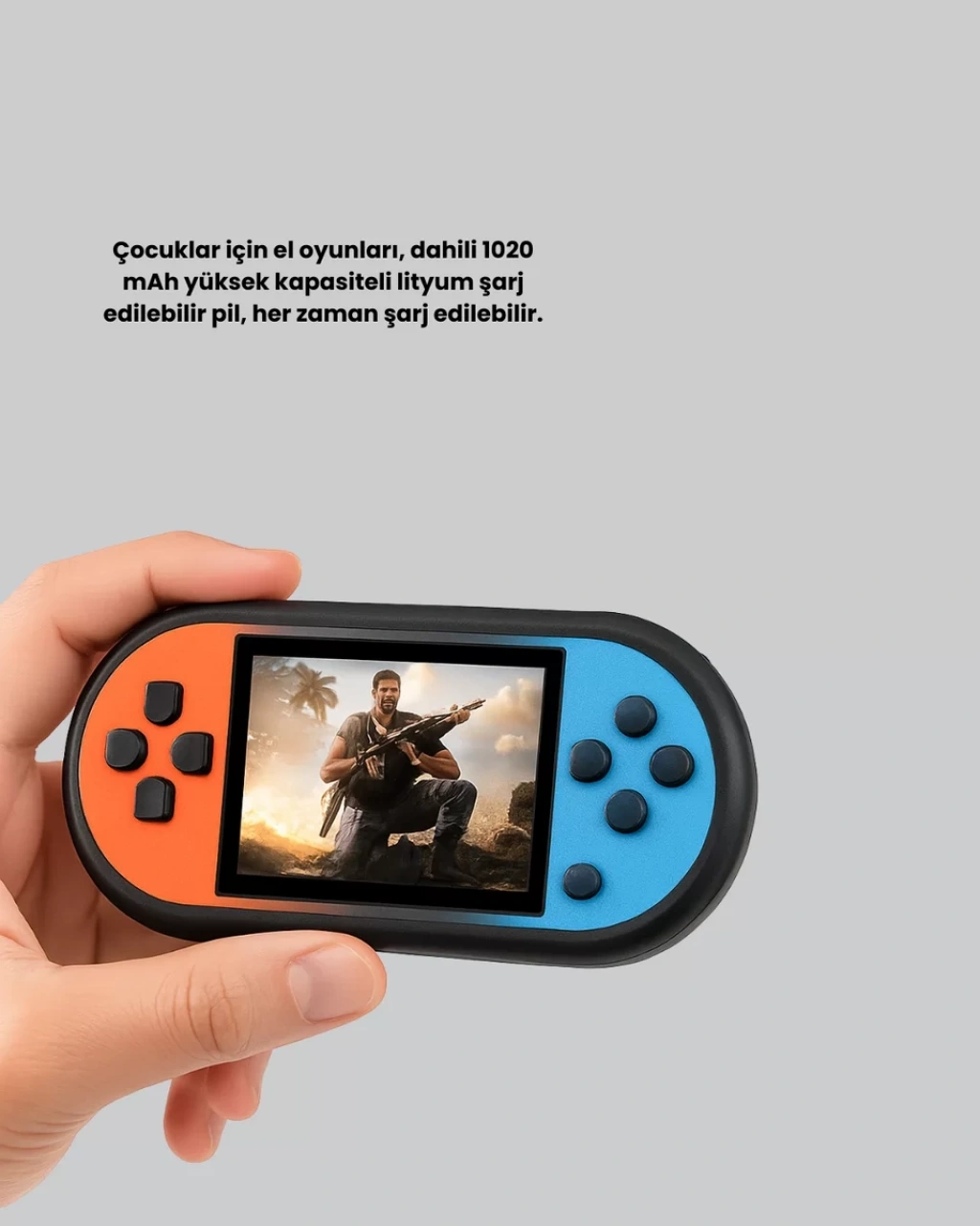 520 oyunlu taşınabilir oyun konsolu, kompakt tasarımı ve etkileyici oyun çeşitliliği ile her yaşa hitap eden eğlenceli bir elektronik cihazdır. İçerisinde bulunan oyunların her biri özel olarak seçilmiş olup, arcade oyunlarından bulmacalara kadar çok geniş bir kategori yelpazesi sunar. HD LCD ekran sayesinde tüm oyunlar net, canlı ve yüksek kaliteyle görüntülenir. Bu ekran, göz yormayan yapısıyla uzun oyun oturumlarında bile kullanıcıların konforunu korur. TV bağlantısı, özellikle aile içi eğlencelerde, çocuklara oyun zamanlarında veya arkadaş buluşmalarında büyük bir avantaj sunar. USB şarj kablosu ile hızlıca şarj edilebilen cihaz, uzun pil kapasitesi ile gün boyu kullanım sağlar. Düşük enerji harcaması, cihazı daha uzun süre oyun oynamaya uygun hale getirir.Konsol, ergonomik tuş dizilimi sayesinde hem küçük eller hem de yetişkin kullanıcılar için rahat bir tutuş sağlar. Tasarımında kullanılan hafif gövde yapısı, taşıma kolaylığı sunar. Seyahatte, otobüste, evde veya dış mekanda oyun oynamak isteyenler için mükemmel bir çözümdür. Cihaz aynı zamanda hediye olarak oldukça popülerdir. Hem oyun meraklısı çocuklara hem de nostalji arayan yetişkinlere alınabilecek harika bir üründür.