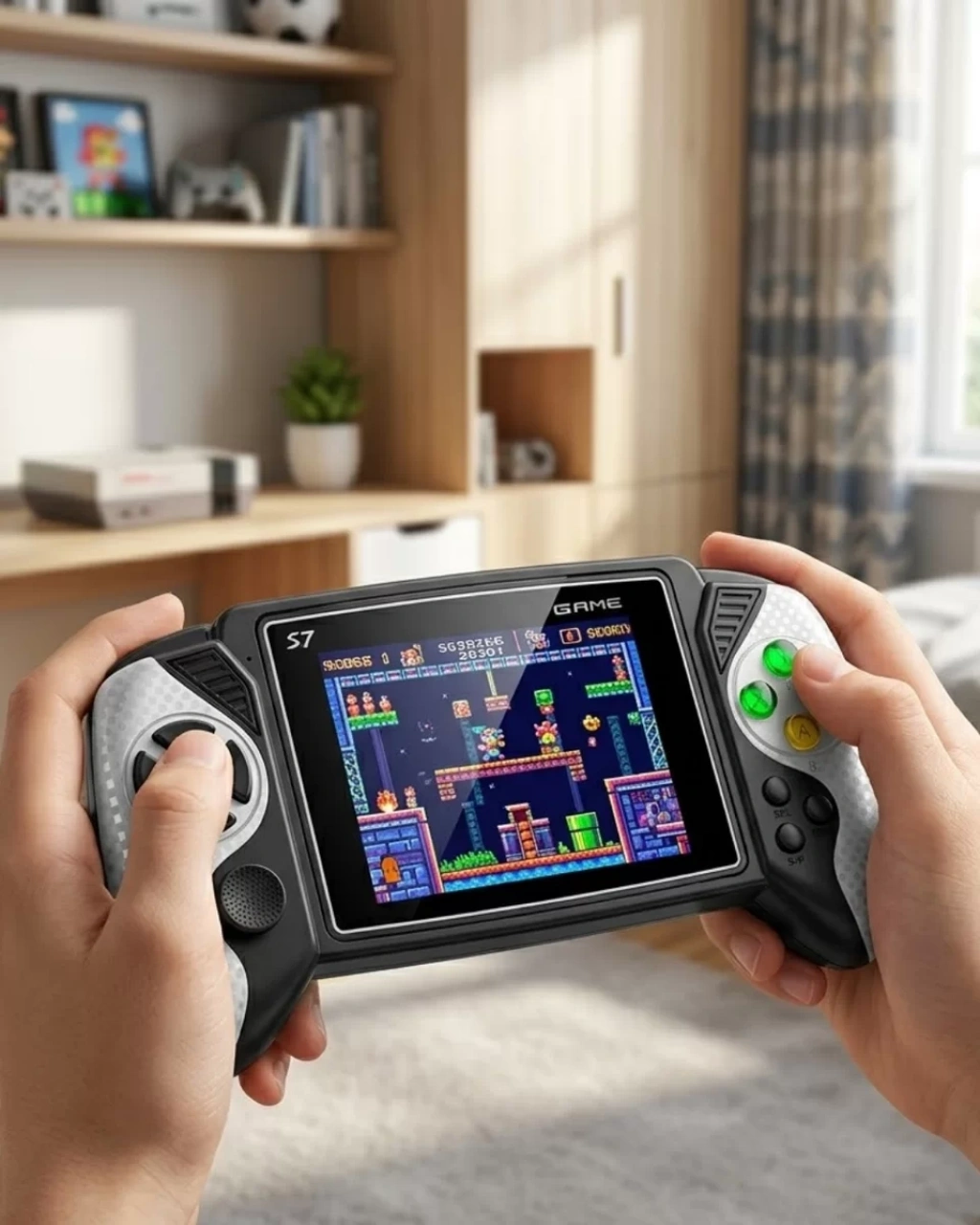 620 adet klasik oyunu tek cihazda sunan bu taşınabilir oyun konsolu, nostalji ve eğlenceyi bir araya getiriyor. Çocukluk anılarınızı yeniden yaşamak ya da keyifli vakit geçirmek için ideal olan bu ürün, kullanıcı dostu tasarımı sayesinde her yaştan kullanıcıya hitap eder. Dahili oyunları sayesinde ekstra kart veya yükleme gerektirmez, kutudan çıktığı gibi kullanıma hazırdır.Geniş ve renkli ekranı sayesinde oyun deneyimi oldukça keyiflidir. Göz yormayan yapısı ile uzun süreli kullanımlarda bile konfor sağlar. Taşınabilir yapısı sayesinde evde, dışarıda, seyahatte veya molalarda rahatlıkla kullanılabilir. Kompakt boyutu çantada kolayca taşınmasını sağlar.Cihazın en dikkat çeken özelliklerinden biri TV bağlantı desteğidir. TV’ye bağlayarak oyunları büyük ekranda oynayabilir, arkadaşlarınız veya ailenizle birlikte eğlenceli anlar yaşayabilirsiniz. Bu özellik, ürünü sadece bireysel değil aynı zamanda sosyal bir eğlence aracına dönüştürür.Şarj edilebilir bataryası sayesinde sürekli pil değiştirme derdi ortadan kalkar. Uzun süreli kullanım sunarak kesintisiz oyun deneyimi sağlar. Ergonomik tasarımı sayesinde elde rahat tutulur ve uzun süre oynarken bile rahatsızlık vermez.Dayanıklı malzeme yapısı ile uzun ömürlü kullanım sunar. Hem çocuklar hem yetişkinler için ideal bir hediye seçeneğidir. Retro oyun severler için kaçırılmayacak bir fırsattır.Anahtar kelimeler: taşınabilir oyun konsolu, retro oyun cihazı, 620 oyun, el konsolu, klasik oyunlar, tv bağlantılı oyun, şarjlı oyun cihazı