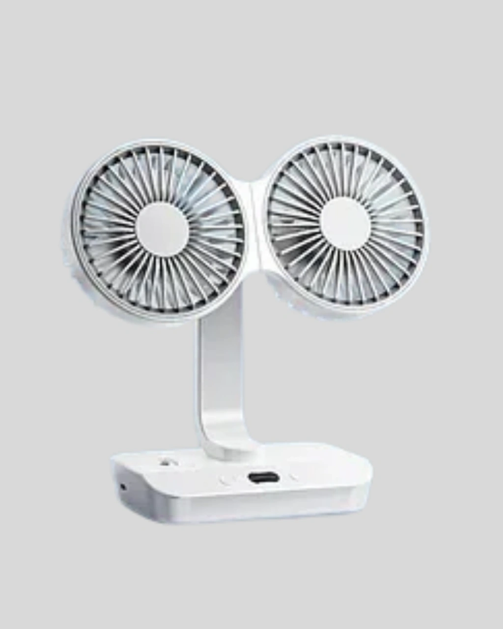 Nevamel® 720° Döner Çift Taraflı Masaüstü Vantilatör – USB Şarjlı Sessiz Fan