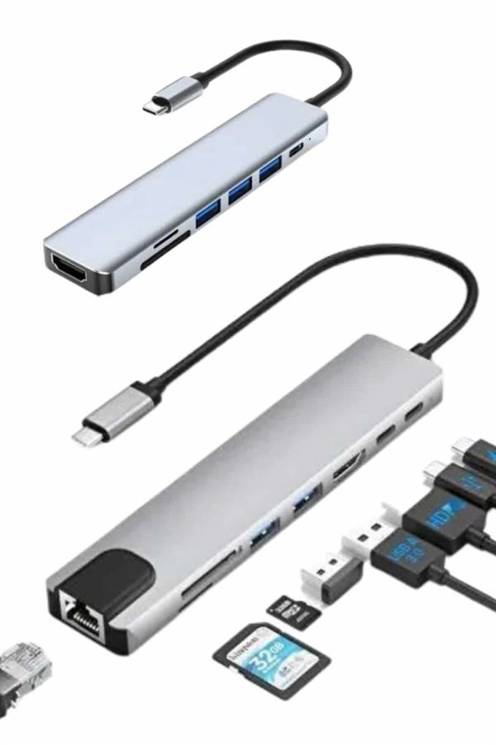 Nevamel 8 Port Çoklayıcı Macbook Ile Uyumlu Çoğaltıcı Type-C dönüştürücü TF SD kart