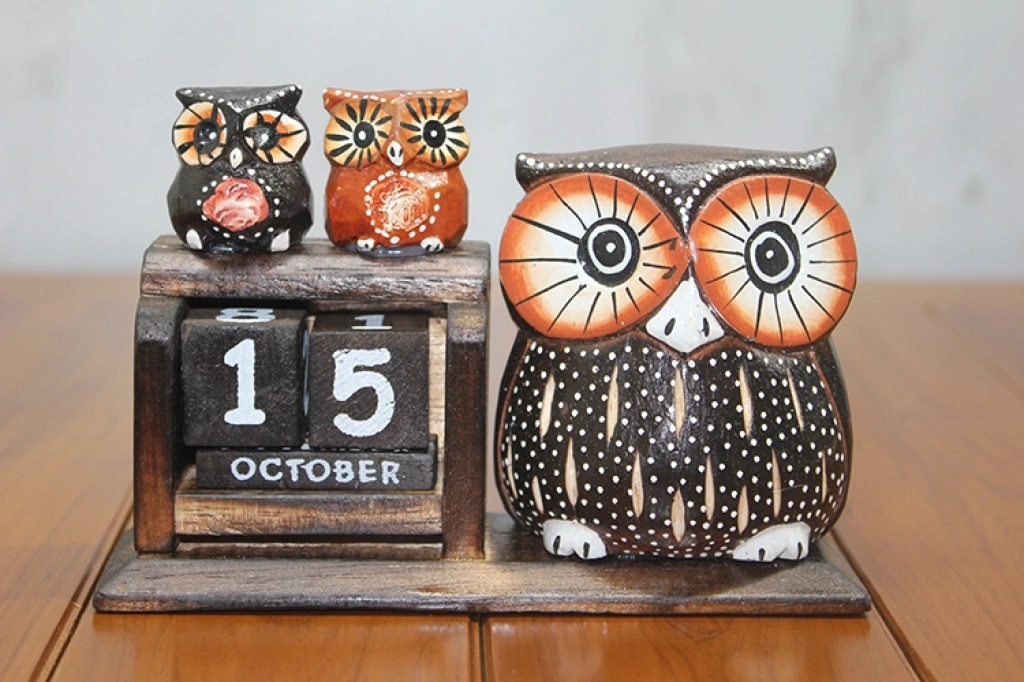 AHŞAP BAYKUŞ TAKVİMÜrün ÖzellikleriDoğal ahşaptan üretilen baykuş figürlü takvim, 11x16 cm boyutundadır. El işçiliğiyle tasarlanan bu dekoratif takvim, masa üstü kullanım için idealdir. Gün, ay ve tarih blokları sayesinde her yıl tekrar kullanılabilir. Baykuş figürü ile estetik ve şık bir görünüm sunan bu ürün, hem işlevsel hem de dekoratif bir masa aksesuarıdır.Paket İçeriği1 adet ahşap baykuş takvim.