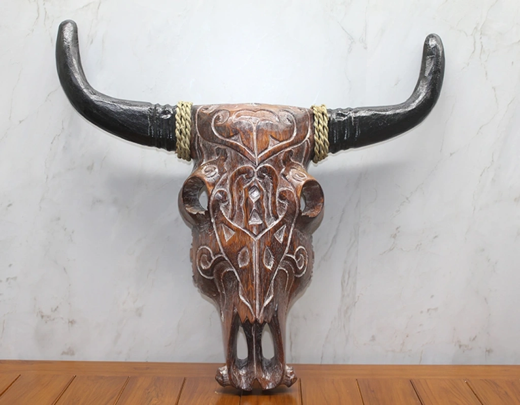AHŞAP DUVARA ASMALI BUFALO KAFASIÜrün ÖzellikleriDoğal ahşaptan el işçiliğiyle üretilen duvara asmalı bufalo kafası figürü, 55x58 cm boyutundadır. Güçlü ve etkileyici tasarımıyla duvar dekorasyonuna farklı bir hava katar. Rustik ve doğal bir atmosfer oluşturmak için ideal olup, ev, ofis ve kafe gibi mekanlarda şık bir dekoratif unsur olarak kullanılabilir. Ahşap dokusu sayesinde dayanıklı ve uzun ömürlüdür.Paket İçeriği1 adet ahşap duvara asmalı bufalo kafası.
