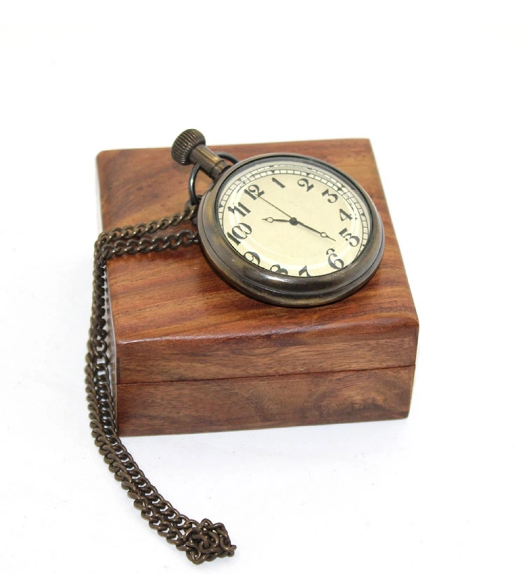 Nevamel Ahşap Kutulu Pirinç Köstekli Saat Model 1
