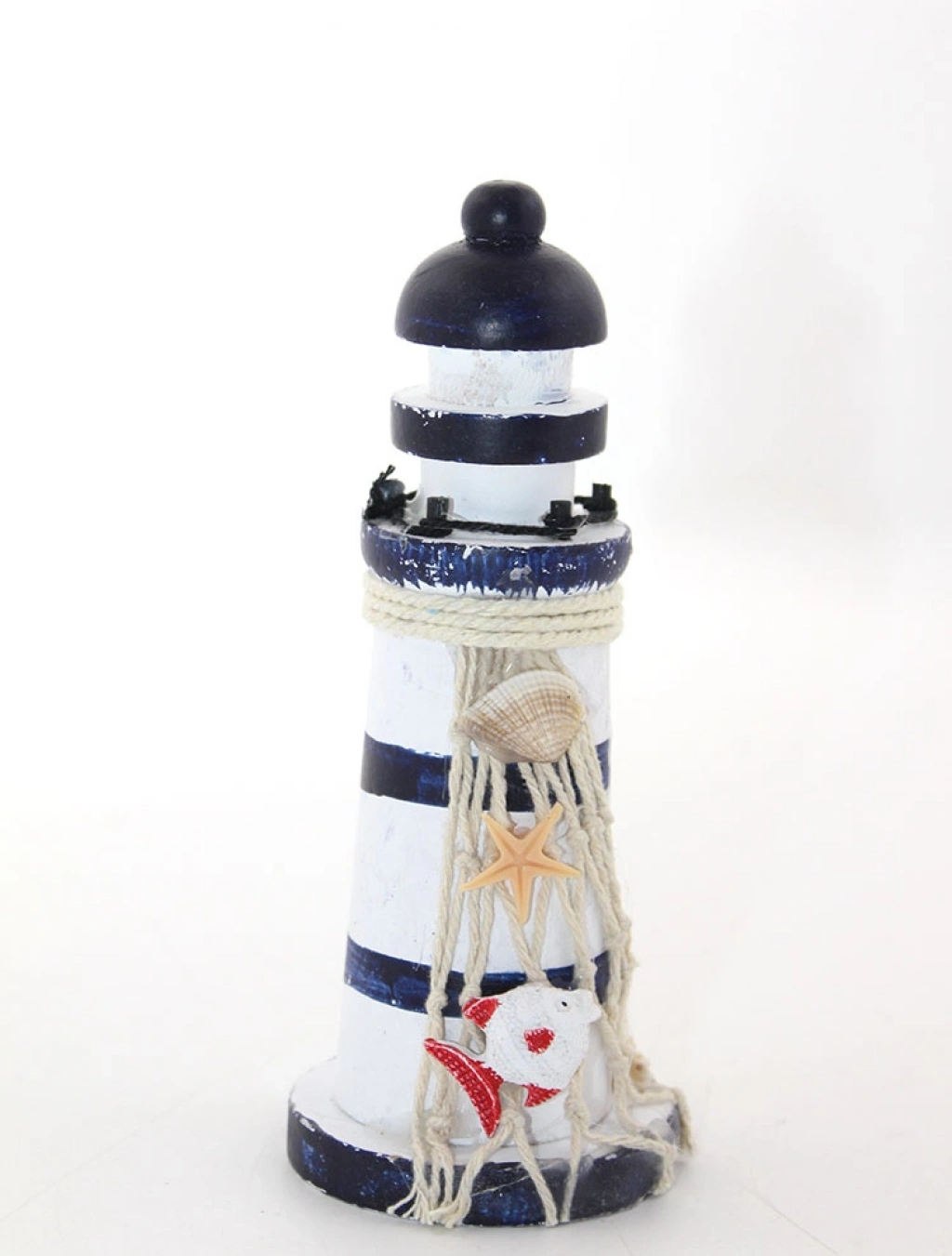 AHŞAP MARİN DENİZ FENERİ MODEL 7Ürün ÖzellikleriAhşap Marin Deniz Feneri Model 7, deniz temalı dekorasyona zarif bir dokunuş katmak için özel olarak tasarlanmıştır. Ahşap malzemeden üretilmiş olup, dayanıklı yapısıyla uzun ömürlü kullanım sunar. El işçiliği ile detaylandırılan bu model, mavi ve beyaz tonlarıyla marin atmosferini tamamlar. Şık tasarımı sayesinde masa, raf veya vitrin gibi alanlarda dekoratif bir unsur olarak kullanılabilir. Ev ve ofis dekorasyonu için ideal bir seçimdir.Paket İçeriği1 adet Ahşap Marin Deniz Feneri Model 7