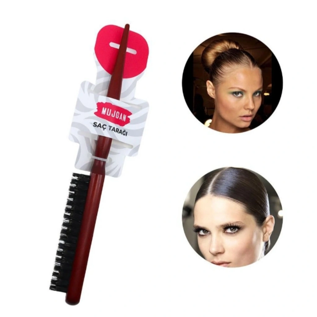 AHŞAP SAPLI TOPUZ TARAĞIÜrün ÖzellikleriAhşap saplı topuz tarağı, saçları düzgün şekilde ayırmak ve sıkı, pürüzsüz topuz modelleri oluşturmak için tasarlanmış kullanışlı bir saç bakım aksesuarıdır. İnce ve sık dişli yapısı sayesinde saç tellerini kontrol altına alır ve toplama işlemini daha düzenli hale getirir. Sivri uçlu sap tasarımı saçları bölümlere ayırmayı kolaylaştırır, özellikle topuz, at kuyruğu ve sıkı modellerde hassas şekillendirme imkânı sunar. Ahşap saplı topuz tarağı ergonomik yapısı sayesinde elde rahat tutulur ve kontrollü kullanım sağlar. Dayanıklı gövdesi ile uzun süreli kullanım sunan ince dişli saç tarağı, saç diplerini kabartmak ve hacim vermek için de tercih edilebilir. Günlük kullanımda ve profesyonel kuaför işlemlerinde kullanılabilen Sleek Bun topuz yapma tarağı, saçlara daha düzgün ve bakımlı bir görünüm kazandırmaya yardımcı olur.Ürün Teknik Özellikleri Özellik Açıklama Ürün Adı Ahşap Saplı Topuz Tarağı Malzeme Ahşap sap ve plastik fırça kısmı Renk Görseldeki renk Kullanım Alanı Saç toplama ve şekillendirme Paket İçeriği1 adet ahşap saplı topuz tarağı