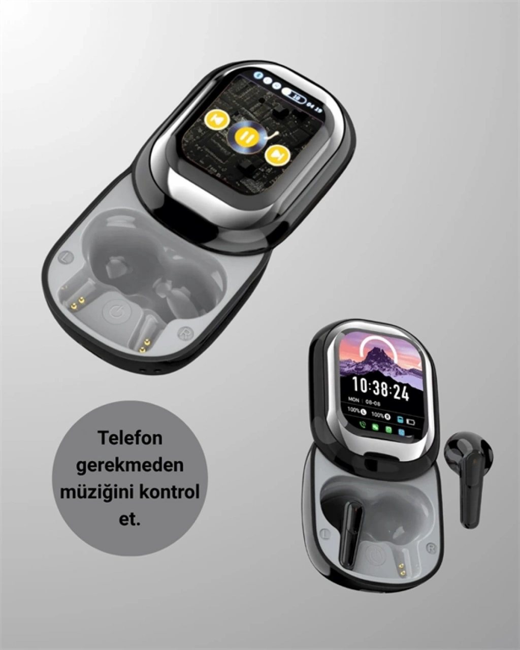 Bu kulaklık, sadece ses değil, teknoloji ve stil sunar. Şarj kutusunun üzerinde yer alan akıllı LED ekran, saat, tarih, pil durumu ve daha fazlasını anlık olarak gösterir. Üstelik ekran temasını değiştirebilir, hatta kendi fotoğrafınızı yükleyerek kişisel bir dokunuş ekleyebilirsiniz. Bu özellik sayesinde cihazınız sadece işlevsel değil, aynı zamanda tarz sahibi bir aksesuara dönüşür.
