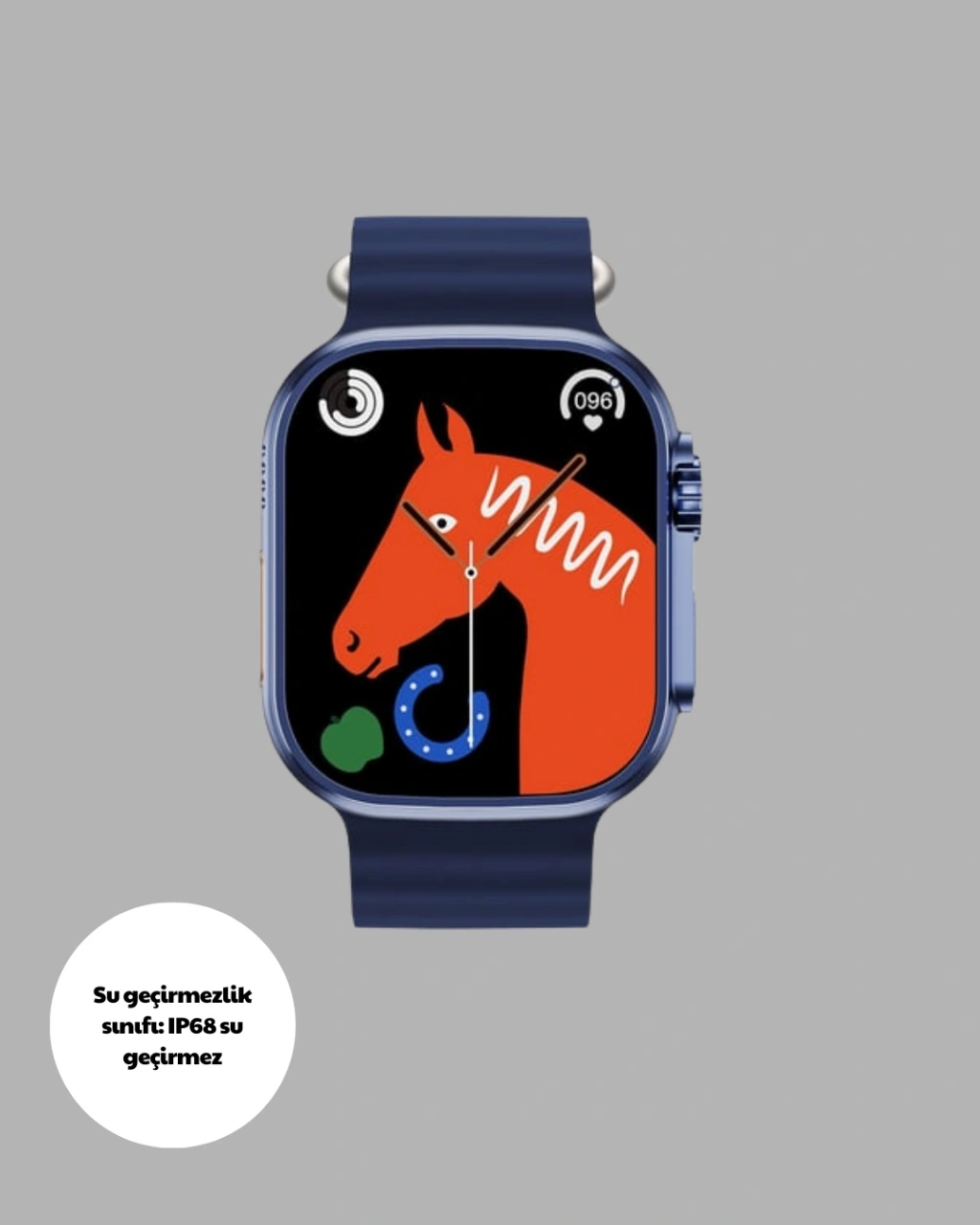 Bu akıllı saat, piyasada uygun fiyatıyla dikkat çeken en yeni Apple Watch Ultra klonlarından biri olup; teknoloji, tasarım ve fonksiyonelliği aynı anda sunan gelişmiş bir modeldir. 2,05 inç büyüklüğündeki geniş IPS ekranı sayesinde bildirimleri, menüleri ve spor modlarını yüksek çözünürlükle görüntüleyebilirsiniz. 420x480 piksel çözünürlüğü ve 2.5D kavisli cam yüzeyi, saate premium bir görünüm kazandırırken aynı zamanda daha net ve canlı renkler sunar.Saatin gövdesi dayanıklı çinko alaşımından, kayışı ise yumuşak ve ergonomik silikon malzemeden üretilmiştir. 49×40×10.7 mm ölçüleri ve yaklaşık 50 gramlık hafif yapısı sayesinde bilekte rahatsızlık oluşturmaz. Üç fonksiyonel yan tuş; menü geçişleri, geri dönüş ve hızlı erişim için oldukça pratik bir kullanım sağlar.IP67 su geçirmezlik sertifikasına sahip olan model, yağmur altında, elde yıkama esnasında ve günlük koşullarda güvenle kullanılabilir. 7/24 kalp atış hızı ölçümü, kandaki oksijen (SPO2) takibi, uyku analizi, tansiyon ölçümü gibi bir akıllı saatte bulunması gereken sağlık özelliklerinin tamamını sunar. Adım sayacı ve kalori hesaplama özelliği sayesinde gün boyu aktivitenizi kontrol edebilirsiniz.Bluetooth arama desteği, dahili hoparlör ve mikrofon ile doğrudan saat üzerinden arama yapabilir veya gelen çağrıları cevaplayabilirsiniz. Çoklu spor modları; yürüyüş, koşu, bisiklet, ip atlama ve daha birçok aktiviteyi takip eder. Ek özellikler arasında: telefon bulma, hava durumu, hareketsizlik uyarısı, termometre, Alipay offline ödeme, alarm, müzik kontrol gibi geniş bir fonksiyon listesi bulunur.360 mAh batarya kapasitesiyle 3-5 gün aktif kullanım, 7 güne kadar bekleme süresi sunarak şarj sıkıntısını ortadan kaldırır. Hem şık hem fonksiyonel hem de bütçe dostu bir akıllı saat arayanlar için mükemmel bir tercihtir.