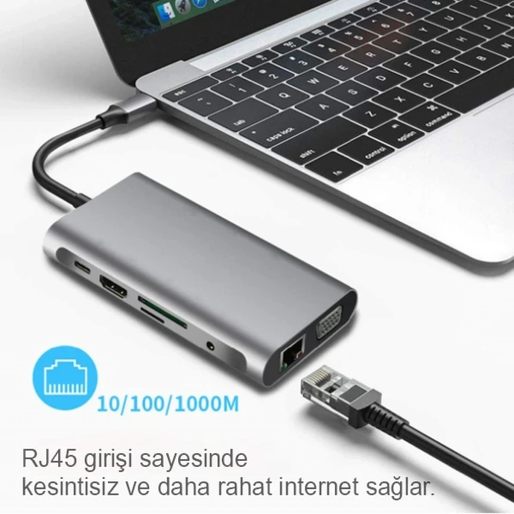 ALLY 10 İN 1 HDMI VGA RJ45 PD USB 3.0 HUB Adaptör Çoklayıcı10 arabirimi tek bir cihazda toplamanız için tasarlanmıştır.
