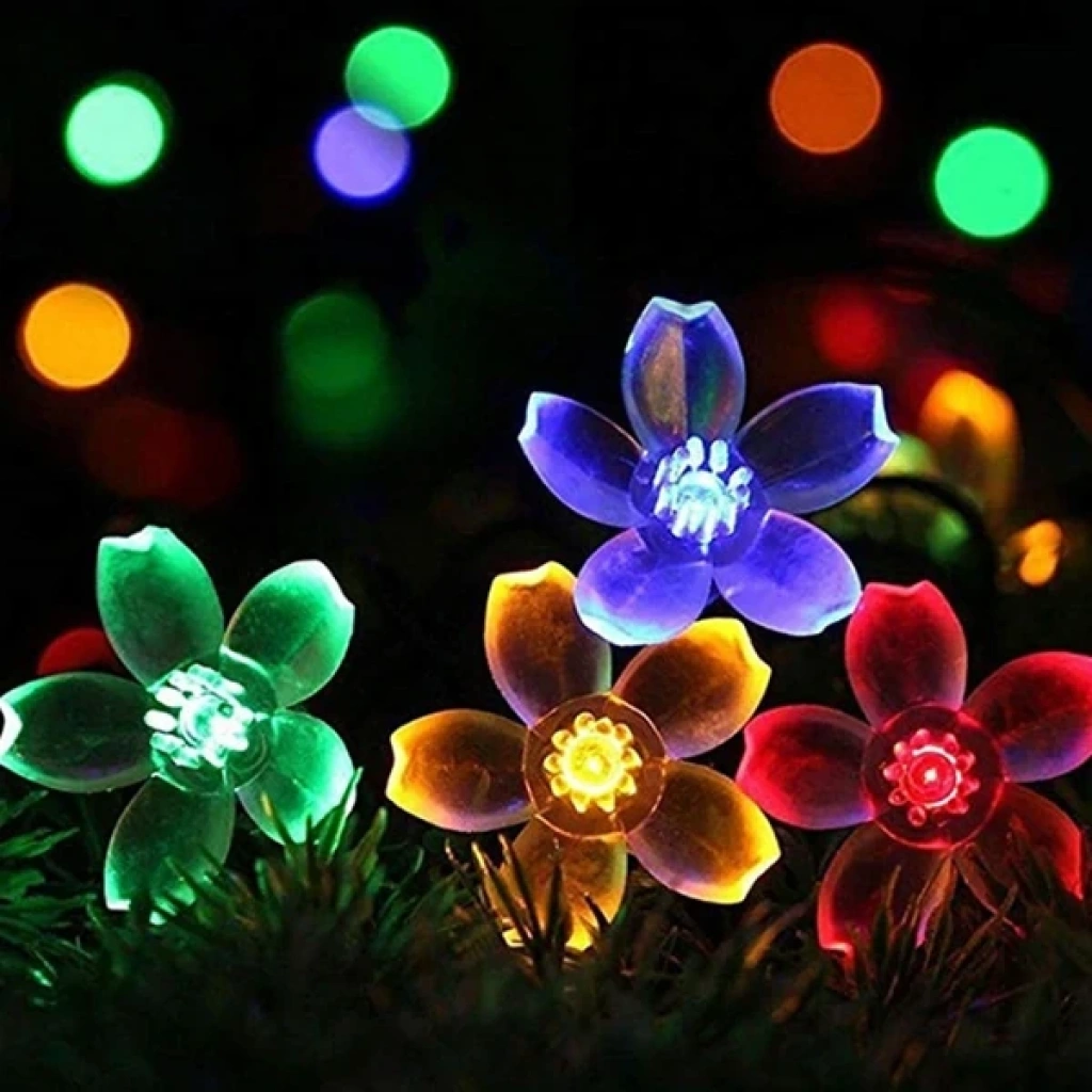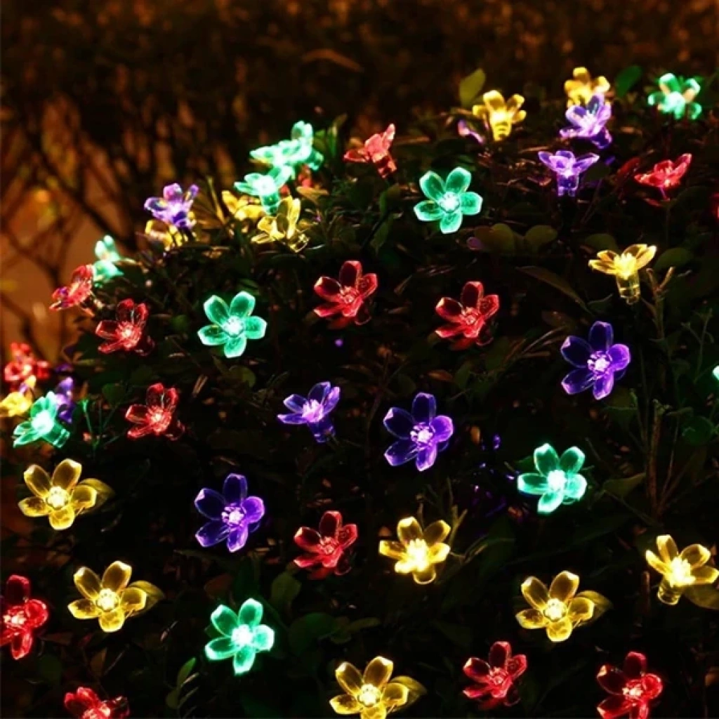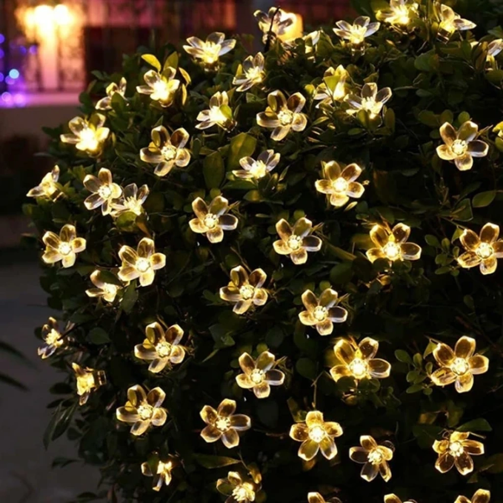 ALLY 7M 50 Kiraz Çiçeği Solar Güneş Enerjili Dış Bahçe Aydınlatma Su Geçirmez Led