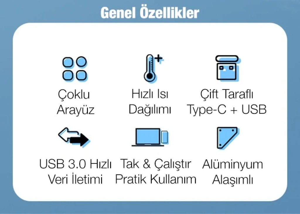 Uyumluluk: Type-C ve USB arayüze sahip cihazlar ile uyumludur.