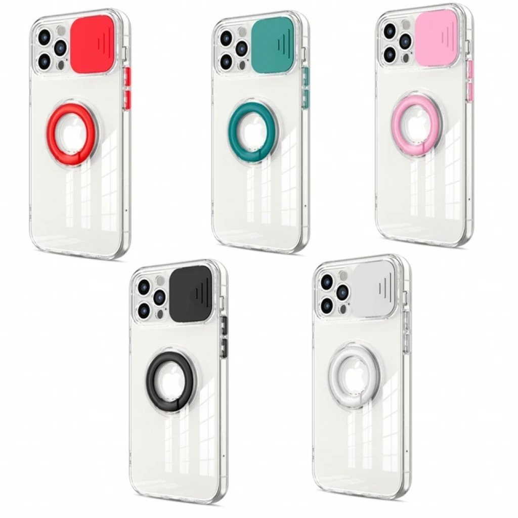 Ally iPhone 12 Pro Max 6.7 inç Kılıf Sürgülü Kamera Lens Korumalı Yüzük Standlı Silikon KılıfSürgülü kapağı sayesinde telefonunuzun kamerasını kırılmaya, çizilmeye ve çatlamaya karşı korur.