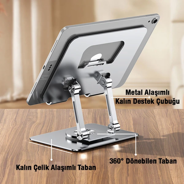 Nevamel 360 Derece Dönebilen Yükseltilmiş Masaüstü Ayarlanabilir Metal Tablet Standı