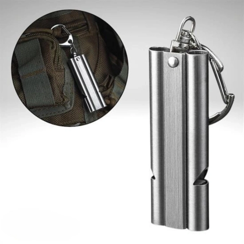 ALÜMİNYUM SOS DÜDÜK ANAHTARLIKÜrün ÖzellikleriYüksek ses gücü ve dayanıklı yapısıyla Alüminyum SOS Düdük Anahtarlık, doğa yürüyüşlerinden kamp aktivitelerine, spor etkinliklerinden acil durumlara kadar her ortamda güvenle kullanılabilir. Kompakt boyutu sayesinde anahtarlık olarak kolayca taşınabilir ve her an ulaşılabilir durumda olur. Paslanmaz çelik ve alüminyum alaşım malzeme yapısı, uzun ömürlü kullanım sunarken suya ve zorlu hava koşullarına karşı da dayanıklıdır.Acil durumlarda 150 desibele kadar ses çıkarabilen bu düdük, yardım çağrısı yapmak için mükemmeldir. Ayrıca evcil hayvan eğitimi, açık hava sporları, kamp, yürüyüş ve dağcılık gibi aktivitelerde de rahatlıkla kullanılabilir. Pürüzsüz yüzeyi ve ergonomik tasarımı sayesinde elde rahat tutuş sağlar ve kolay üfleme imkânı sunar.Hafif tasarımı (10 gram) sayesinde cebinizde, çantanızda veya kemerinizde fark edilmeden taşınabilir. Şık metalik rengiyle hem işlevsel hem de estetik bir görünüme sahiptir.Paket İçeriği1 adet Alüminyum SOS Düdük Anahtarlık