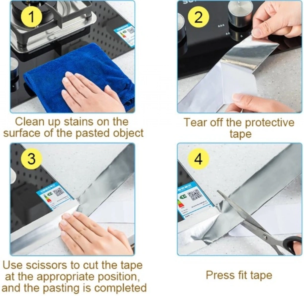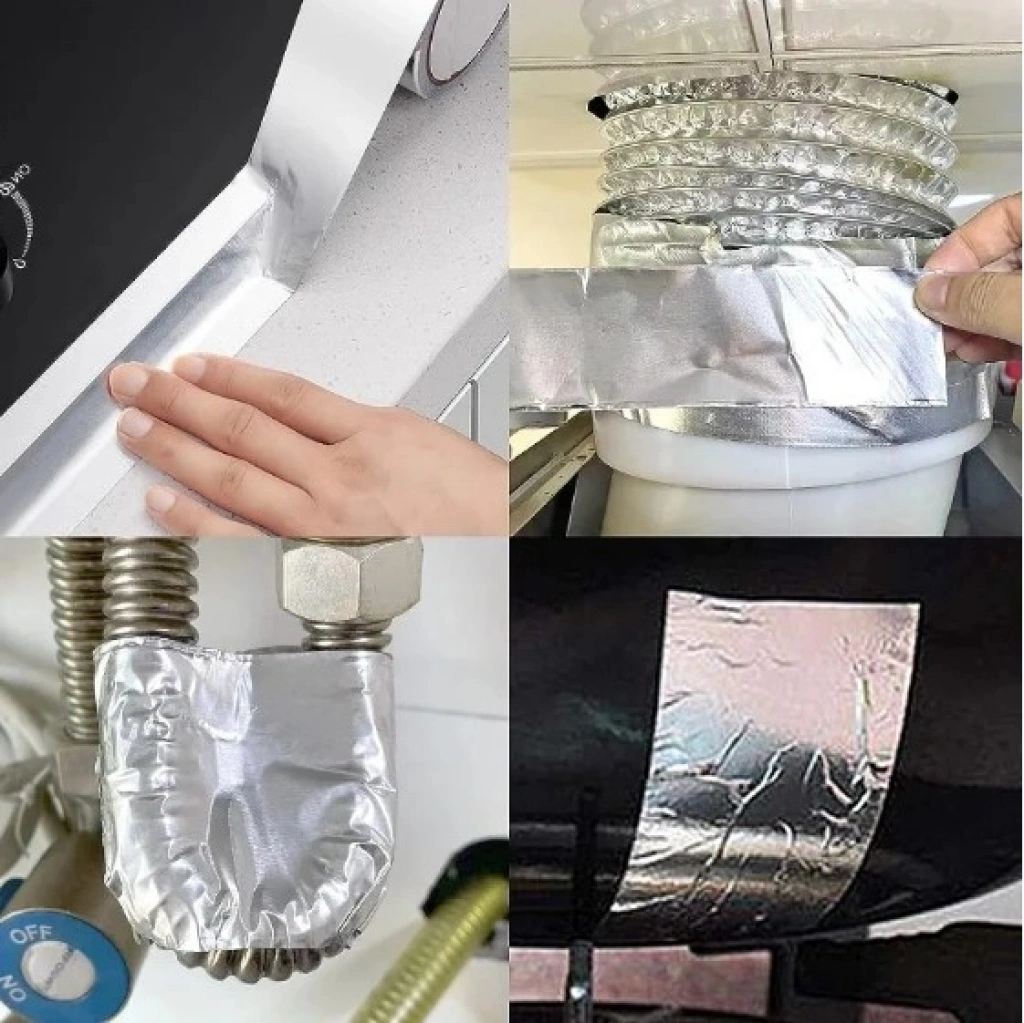 ALÜMİNYUM SU SIZDIRMAZ YANMAZ BANTAlüminyum su geçirmez koruma bantı ocak kenarı, lavabo ve  ihtyaca göre boşluklar için uygundur.Kendinden yapışkanlı alüminyum bantı ihtiyacınıza göre kesim yaparak kullanabilirsinizGüçlü sızdırmazlık, anti-yağ ve anti-küf özellikleri vardır.Yangın geciktirici, ısı yalıtımı ve yüksek sıcaklık dayanımı sağlar.Boyutları:Genişlik: 3 cmUzunluk : 5 metre