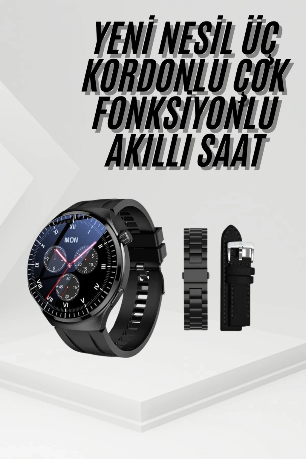 Nevamel Amoled Ekran Metal Deri Silikon Kordonlu Uyku ve Sağlık Takibi