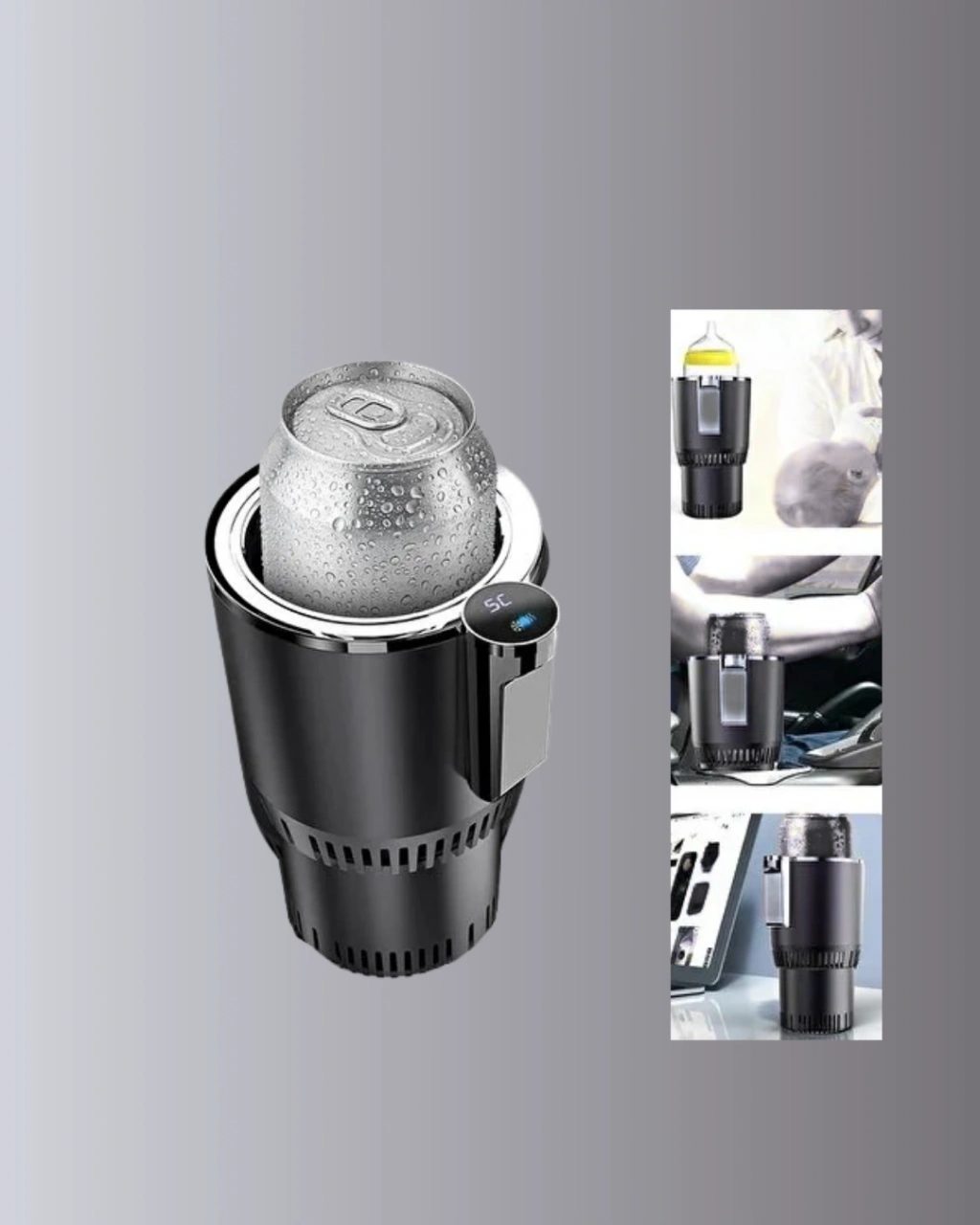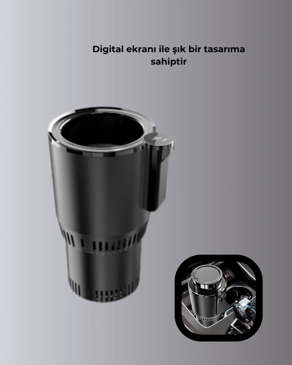 Akıllı araç içi ısıtıcı-soğutucu bardaklık, kullanıcısına içeceğini dilediği sıcaklıkta tüketme özgürlüğü sunar. Özel teknolojiye sahip taban kısmı sayesinde içeceği çok hızlı şekilde ısıtır veya soğutur. 60°C’ye kadar ısıtma ve -4°C’ye kadar soğutma kapasitesi sayesinde kahve, çay, süt, enerji içeceği, kola, su ve benzeri tüm içeceklerle uyumludur. 300 saniyeden kısa sürede sonuç veren hızlı moduyla en pratik araç içi ürünlerden biridir. Dijital ekranı modern görünüm sunarken kullanım kolaylığı sağlar. Ürün, araç çakmak girişinden çalıştığı için her araçta kullanılabilir ve ek adaptör gerektirmez. Yolculukta sıcak içeceği soğumasın, soğuk içeceği ısınmasın isteyenler için vazgeçilmez bir üründür. Şık tasarımı sayesinde hem araç içi dekora uyum sağlar hem de kullanım keyfi sunar.