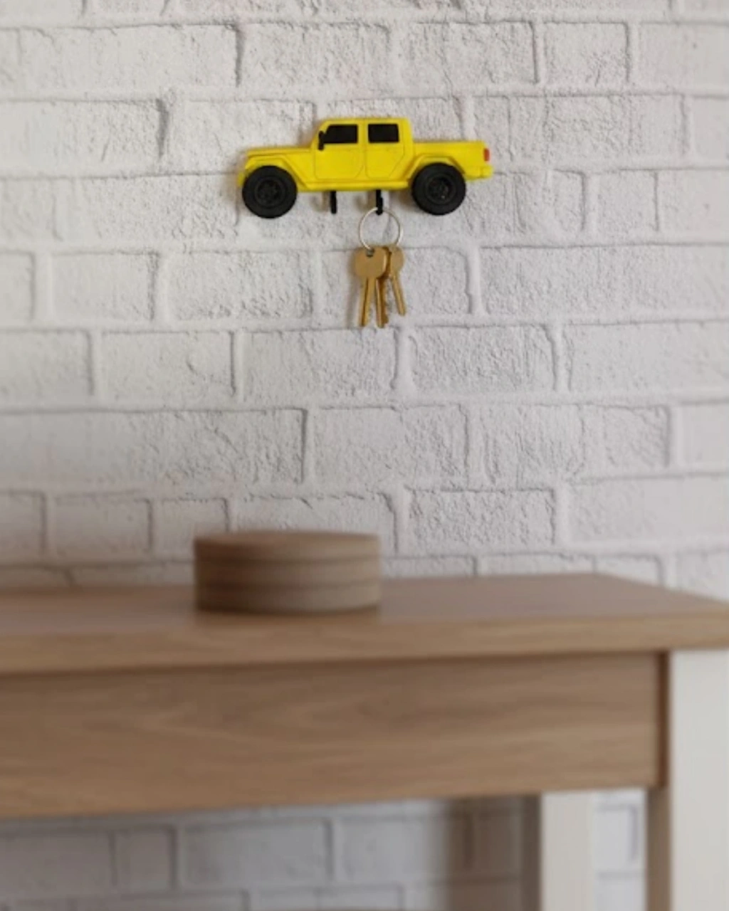 Araba figürlü duvar anahtarlığı, hem dekoratif hem de işlevsel yapısıyla ev girişlerinde pratik bir kullanım sunar. Duvara monte edilebilen tasarımı sayesinde anahtarlarınızı tek bir yerde düzenli şekilde asmanıza yardımcı olur. Şık ve modern görünümü ile salon, antre veya ofis duvarlarında dikkat çekici bir dekor tamamlayıcısıdır. Günlük kullanım için ideal olduğu gibi dekoratif görünümüyle de öne çıkar.