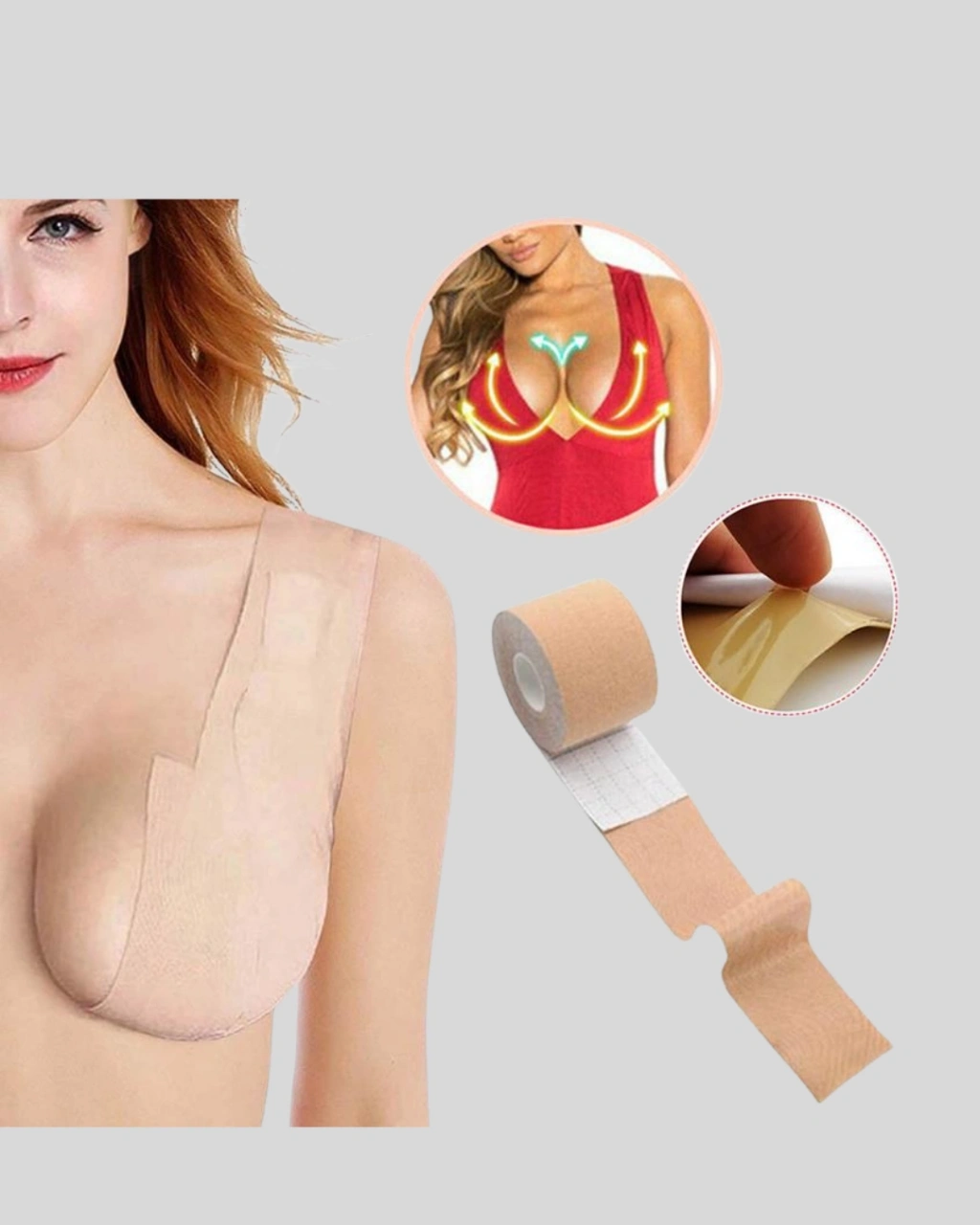 Göğüsleri doğal bir şekilde toparlayan bu görünmez destek bandı, konfor ve zarafeti bir arada sunar. %95 pamuk – %5 elastan karışımı sayesinde nefes alabilir, ciltte tahriş yapmadan güvenli bir kullanım sağlar.Özel dalgalı yapışkan tasarımı ile güçlü tutuş sunarken, cildinizden kolayca çıkar. Dilediğiniz forma göre kesilebilir ve her beden için uygundur. Günlük kombinlerden özel davetlere kadar her ortamda kıyafet altında görünmeden destek sağlar.