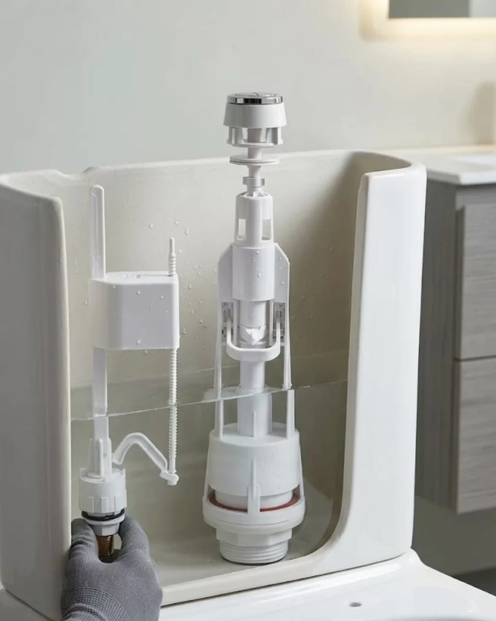 Basmalı vitrifiye rezervuar iç takımı, klozet rezervuarlarının düzgün ve verimli şekilde çalışmasını sağlayan önemli bir tesisat ekipmanıdır. Rezervuar içerisinde bulunan mekanizma sistemi, suyun depolanması, dolum kontrolü ve tahliye işlemlerinin düzenli bir şekilde gerçekleşmesini sağlar. Dayanıklı plastik malzeme kullanılarak üretilmiş olan rezervuar iç takımı uzun süreli kullanım için geliştirilmiş olup ev, iş yeri ve ticari alanlarda kullanılabilecek güvenilir bir çözümdür.Rezervuar iç mekanizması, basmalı sistem ile çalışarak suyun hızlı ve kontrollü şekilde tahliye edilmesini sağlar. Üst basma düğmesine basıldığında tahliye mekanizması devreye girer ve rezervuardaki su klozete yönlendirilir. Bu işlem tamamlandıktan sonra şamandıra sistemi devreye girerek rezervuarın yeniden su ile dolmasını sağlar. Böylece sistem otomatik olarak çalışır ve her kullanımda aynı performansı sunar.Bu rezervuar iç takımı alt girişli su bağlantısına sahip olup birçok farklı rezervuar modeli ile uyumlu şekilde kullanılabilir. Ayarlanabilir yapısı sayesinde farklı yükseklik ölçülerine sahip rezervuarlara kolayca adapte edilebilir. Bu özellik montaj sırasında büyük kolaylık sağlar ve tesisat işlemlerini pratik hale getirir.Sessiz dolum sistemi sayesinde su dolarken rahatsız edici ses oluşmaz. Özellikle gece kullanımlarında veya sessiz ortamlarda bu özellik önemli bir avantaj sağlar. Ayrıca mekanizmanın su seviyesini ayarlayabilme özelliği sayesinde rezervuarın dolum miktarı kontrol edilebilir ve su tasarrufu sağlanabilir.Dayanıklı malzeme yapısı sayesinde uzun süreli kullanımlarda performansını korur. Sızdırmaz conta sistemi su kaçaklarını önlemeye yardımcı olur ve rezervuarın verimli çalışmasını sağlar. Kolay montaj özelliği sayesinde tesisat ustaları veya kullanıcılar tarafından kısa sürede kurulabilir.Basmalı vitrifiye rezervuar iç takımı, dayanıklı yapısı, sessiz çalışma özelliği ve ayarlanabilir mekanizması sayesinde klozet rezervuarlarının sorunsuz şekilde çalışmasını sağlayan pratik bir tesisat çözümüdür.