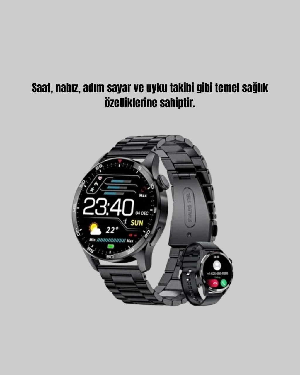 Günlük yaşamınızı kolaylaştıran bu akıllı saat, modern teknolojiyi şık bir tasarımla buluşturur. 100–200 mAh bataryasıyla tam dolu şarjla bir güne kadar kesintisiz kullanım sunar. Bluetooth bağlantısı sayesinde telefonunuza hızlı ve kararlı şekilde bağlanır; çağrı, mesaj ve sosyal medya bildirimlerini bileğinizden takip etmenize olanak tanır. Nabız ölçer sensör, kalp atış hızınızı anlık olarak izler. Adım sayar özelliğiyle günlük aktivite düzeyinizi kaydeder, uyku takip sistemi ise uyku kalitenizi analiz ederek sağlıklı bir yaşam tarzı oluşturmanıza yardımcı olur. Çoklu spor modu desteği sayesinde koşu, yürüyüş veya bisiklet gibi aktivitelerde performansınızı takip edebilirsiniz. Ergonomik yapısı, uzun süreli kullanımda bile konfor sağlar. Hafif ve zarif tasarımıyla hem spor hem günlük kombinlerinize uyum sağlar.