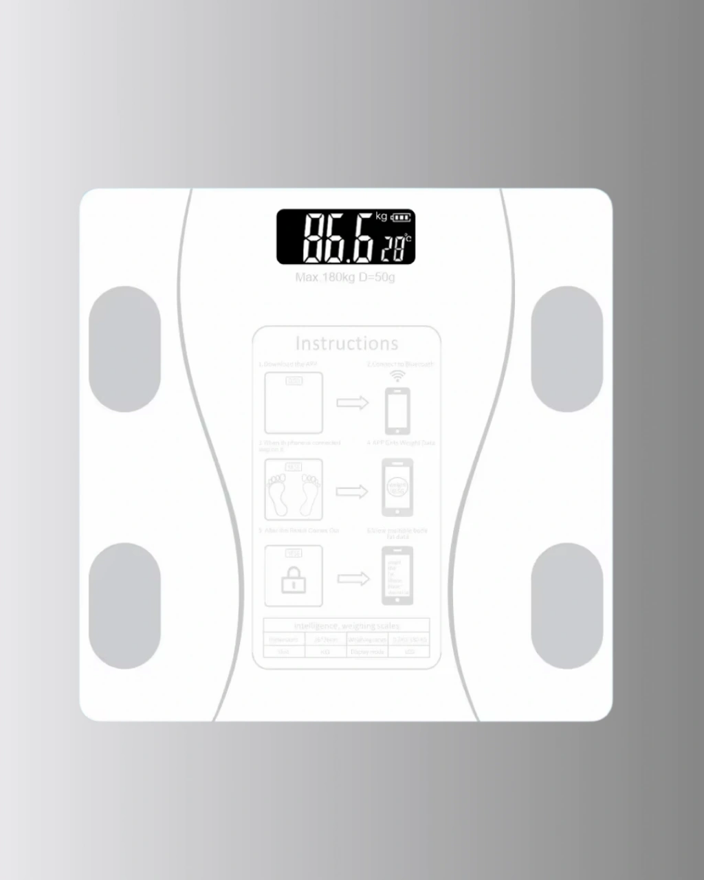 Sağlığınızı takip etmenin en akıllı yolu! Akıllı Bluetooth Tartı, yalnızca ağırlığınızı değil, vücudunuzla ilgili birçok detayı analiz ederek size kapsamlı bir sağlık raporu sunar. Gelişmiş sensör teknolojisi sayesinde 8 farklı ölçüm verisini (ağırlık, vücut yağı, visseral yağ, kas oranı, kemik yoğunluğu, BMR, yaş ve BMI) anında hesaplar.Bluetooth bağlantı özelliği ile akıllı telefonunuza kolayca bağlanabilir. Android ve iOS uyumlu OKOK International uygulaması, ölçüm sonuçlarınızı anlık olarak görüntülemenizi ve geçmiş verilerinizi takip etmenizi sağlar. Böylece kilo değişimlerinizi, yağ oranınızı veya kas gelişiminizi düzenli olarak gözlemleyebilir, sağlıklı bir yaşam için kişisel hedefler belirleyebilirsiniz.Tartı, otomatik kullanıcı tanıma sistemi sayesinde farklı aile bireylerini algılayarak kişisel profilleri otomatik olarak oluşturur. Bu özellik, ailedeki herkesin kendi ölçümlerini ayrı ayrı takip etmesine olanak tanır.3 kg – 180 kg kapasiteye sahip bu dijital baskül, kg/lb/st birimleriyle ölçüm yapabilir. Üzerine çıkıldığında otomatik olarak çalışır ve kullanılmadığında kendiliğinden kapanır. Ayrıca oda sıcaklığını da gösterebilir.Aşırı yük uyarısı güvenli kullanım sağlarken, şık ve modern tasarımı her banyoya veya spor alanına zarif bir dokunuş katar. 2 adet AAA pil ile çalışır ve enerji tasarruflu sistemiyle uzun ömürlü kullanım sunar.Kilo kontrolünü teknolojiyle buluşturmak isteyen herkes için ideal!Akıllı Bluetooth Tartı, sağlığınızı yakından takip etmenin en kolay, en akıllı ve en modern yolunu sunar.