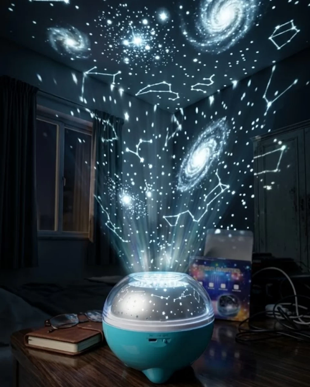 Bluetooth hoparlörlü yıldız projeksiyon gece lambası, yaşam alanlarınıza hem estetik hem de fonksiyonel bir dokunuş katmak için tasarlanmış çok yönlü bir üründür. Tavan ve duvarlara yansıttığı yıldız ve galaksi efektleri sayesinde bulunduğunuz ortamı anında rahatlatıcı ve büyüleyici bir atmosfere dönüştürür. Özellikle yatak odası, çocuk odası veya romantik ambiyans oluşturmak istediğiniz alanlar için ideal bir tercihtir.Ürün, dahili Bluetooth özelliği sayesinde telefon, tablet veya diğer cihazlarla kolayca bağlantı kurarak müzik çalmanıza olanak tanır. Böylece hem görsel hem işitsel bir deneyim sunar. Dahili hoparlörü sayesinde ekstra bir ses sistemine ihtiyaç duymaz.Uzaktan kumanda ile kontrol edilebilmesi kullanım kolaylığı sağlar. Işık renklerini değiştirebilir, projeksiyonun dönme özelliğini açıp kapatabilir ve zamanlayıcı ayarı yapabilirsiniz. 7 farklı renk seçeneği ile ortamın ruh haline göre ışık ayarı yapılabilir.Şarj edilebilir yapısı sayesinde kablo karmaşası olmadan rahat kullanım sunar. Uzun süreli kullanım imkanı sağlayan bataryası ile kesintisiz deneyim yaşatır.Bu ürün hem dekoratif hem de işlevsel bir gece lambası arayan kullanıcılar için mükemmel bir seçimdir. Özellikle çocukların uykuya geçişini kolaylaştırırken yetişkinler için de rahatlatıcı bir ortam oluşturur.Anahtar kelimeler: yıldız projeksiyon, gece lambası, bluetooth hoparlör, led ışık, dekoratif lamba, uzaktan kumandalı lamba