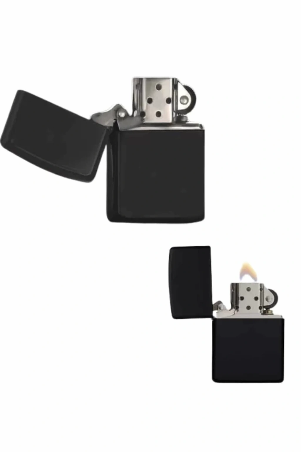 Nevamel® Çakmak Parlak Siyah Benzinli Çakmak Cep Boy Doldurulabilir