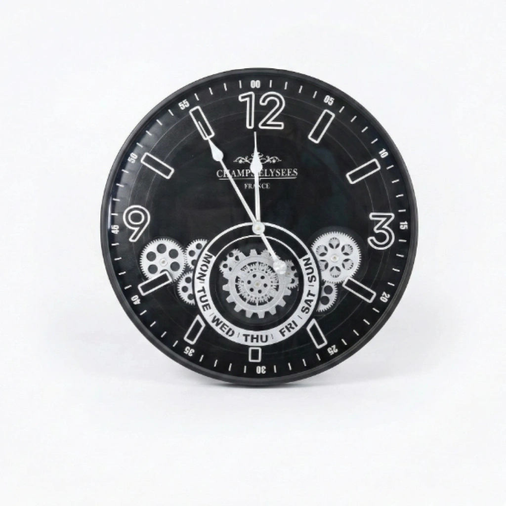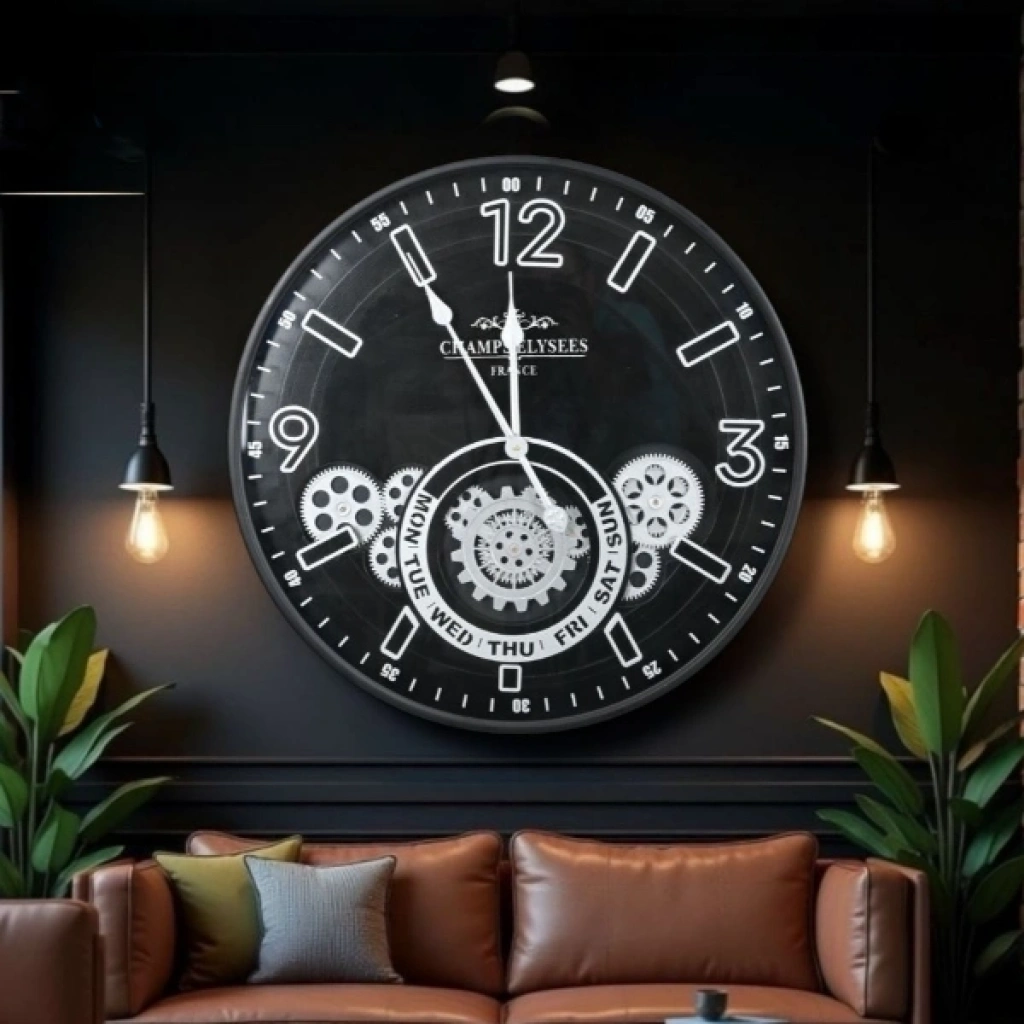 ÇARKLI DUVAR SAATİ GÜMÜŞ DETAYLI 59 CMÜrün ÖzellikleriÇarklı duvar saati gümüş detaylı 59 cm modeli, endüstriyel ve modern dekorasyon tarzını bir araya getiren şık ve dikkat çekici tasarımıyla yaşam alanlarına güçlü bir karakter kazandırır. Geniş 59 cm çapı sayesinde duvarda tek başına dekoratif bir odak noktası oluşturur ve özellikle salon, ofis, kafe, restoran ve loft tarzı mekânlarda etkileyici bir görünüm sunar. Saatin iç kısmında yer alan gümüş renkli çark detayları, mekanik estetiği vurgularken dekorasyona hareketli ve sofistike bir hava katar. Siyah zemin üzerine yerleştirilen beyaz ve gümüş tonlu rakamlar, uzaktan dahi kolay okunabilirlik sağlayarak hem estetik hem de fonksiyonel bir kullanım sunar. Dayanıklı gövde yapısı uzun süreli kullanım için tasarlanmıştır ve duvara kolayca monte edilebilir. Sessiz akan mekanizması sayesinde çalışma, dinlenme ve uyku alanlarında rahatsız edici bir ses oluşturmaz. Büyük boy tasarımı ile klasik duvar saatlerinden ayrılan bu model, dekorasyonda fark yaratmak isteyen kullanıcılar için ideal bir tercihtir.Paket İçeriği1 adet çarklı duvar saati gümüş detaylı 59 cm