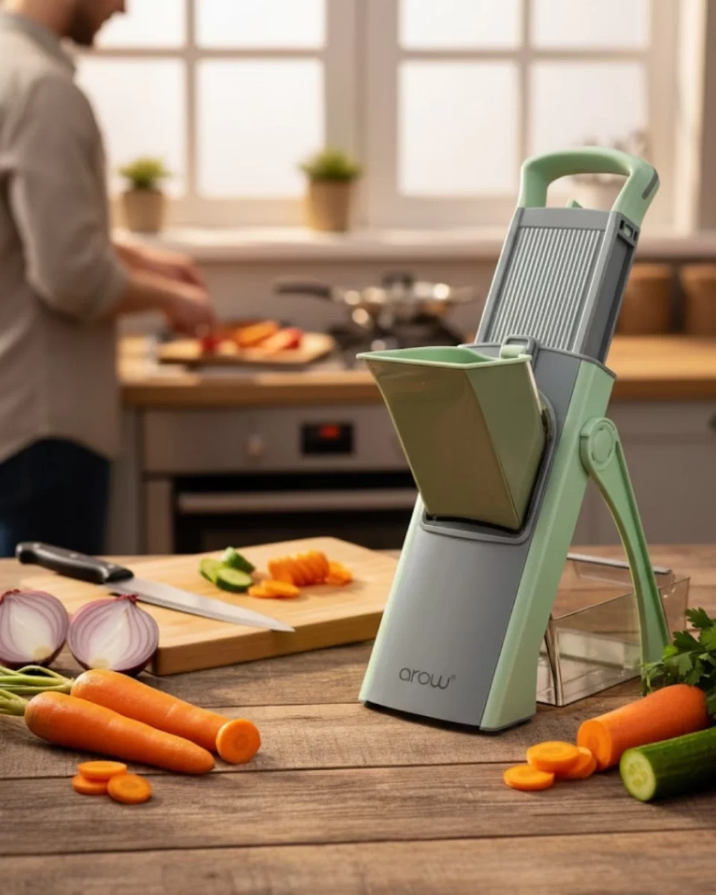 Paslanmaz çelikten üretilmiş bu el rendesi, sağlamlığı ve güvenli yapısıyla mutfakta uzun süreli kullanım sunar. Dayanıklı çelik gövde, günlük doğrama ve dilimleme işlemlerinde yüksek performans sağlar. Keskin ve paslanmaz bıçaklar, farklı sebze ve meyveleri kolayca işlemenize yardımcı olur.Üstte yer alan bastırma aparatı, kullanıcıya kontrollü ve dengeli bir doğrama deneyimi sunar. Bu yapı sayesinde eliniz doğrudan bıçaklarla temas etmez ve güvenli kullanım ön planda tutulur. Ergonomik tasarım, hem sağ hem sol el kullanımına uygundur.Katlanabilir kompakt tasarım, ürünü kullandıktan sonra rahatça saklamanızı sağlar. Temizlik fırçası, bıçak aralarında kalan parçaları zahmetsizce temizlerken, yiyecek toplama kabı mutfak tezgâhının dağılmasını önler. Şık ve modern görünümüyle mutfağınıza estetik bir katkı sağlar.