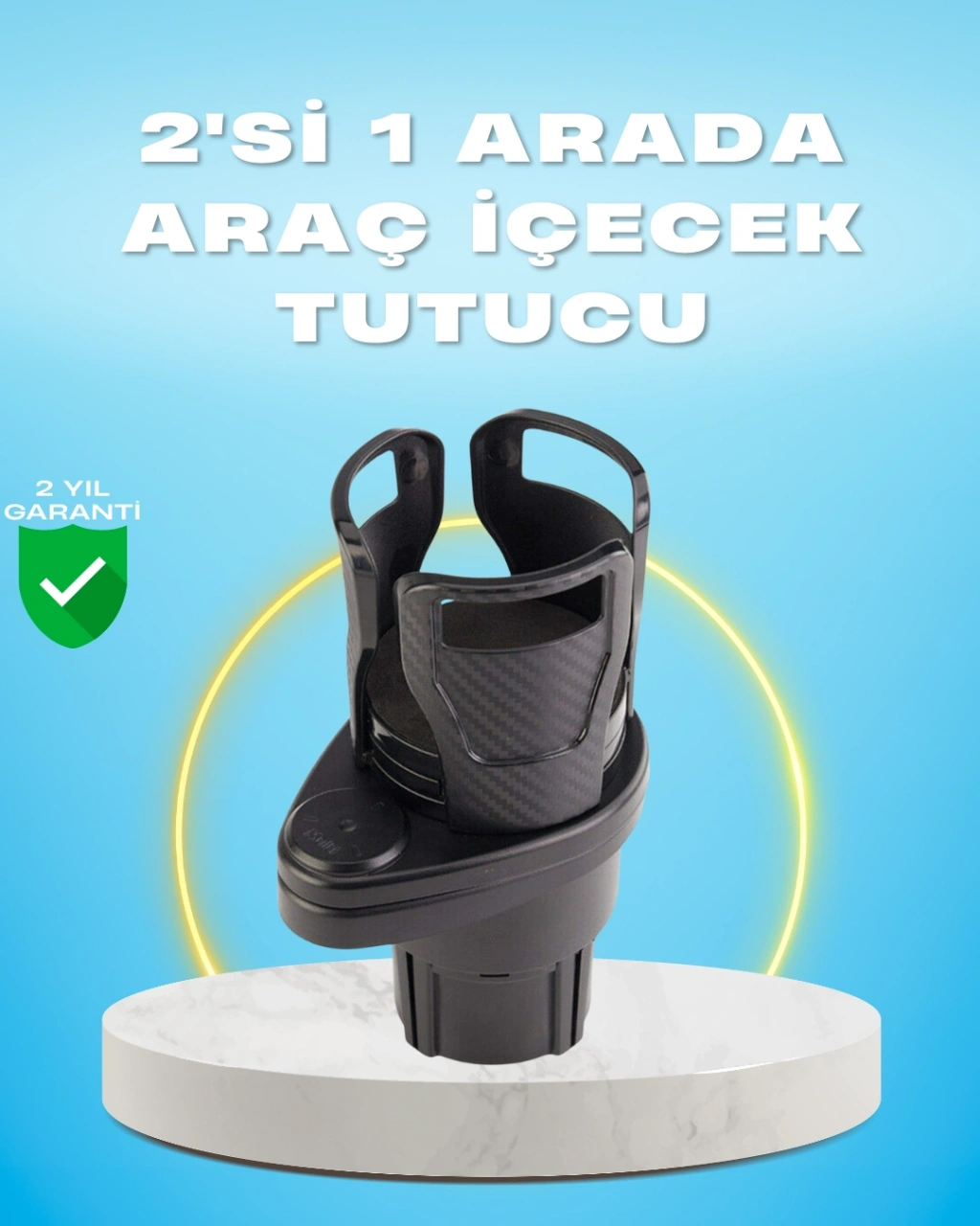 Otomobil içi kullanım için özel olarak tasarlanmış 360° döner çift bardak tutucu, hem yer kazandırır hem de konfor sağlar. Tek bardak yuvasını ikiye bölerek aynı anda iki içecek taşımanıza imkân tanır. Ayarlanabilir genişlik yapısı, hem küçük şişelere hem de büyük boy termos ve kupalara uyum sağlar. Gövdesi kalınlaştırılmış sert plastikten üretilmiştir ve karbon fiber görünümüyle premium bir hava katar. Yüksek sıcaklıklara dayanıklı yapısı sayesinde yaz aylarında dahi deforme olmaz. Kaymaz ve su geçirmez yüzeyi kolayca temizlenebilir. Telefon, anahtar veya küçük eşyaları koymanız için ek kullanım alanı sunar. Uzun yol sürücülerinden şehir içi kullanıcılarına kadar herkes için işlevsel ve modern bir araç aksesuarıdır.