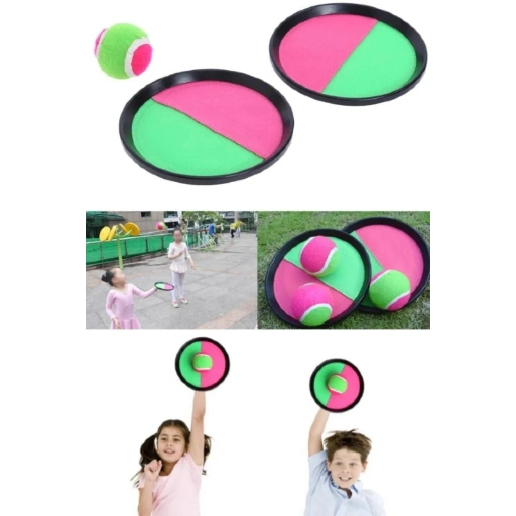 CIRTLI YAPIŞAN TOP OYUNCAK – AT TUT YAKALAÜrün ÖzellikleriCırtlı Yapışan Top Oyuncak Seti, hem çocuklar hem de yetişkinler için eğlenceli ve hareket dolu bir oyun deneyimi sunar. Dayanıklı cırt yüzeyi sayesinde top aparata kolayca yapışır ve oyun boyunca yüksek tutuş performansı sağlar. Açık alanlarda, parkta, sahilde veya bahçede aktif vakit geçirmek için ideal bir tercihtir.El koordinasyonu, refleks gelişimi ve motor becerilerini destekleyen bu set, aile oyunlarında ve çocuk aktivitelerinde keyfi artırır. Hafif yapısı sayesinde kolayca taşınabilir ve her yaş grubuna uygun eğlenceli bir oyundur. 2 kişilik kullanım için tasarlanan set, arkadaşlar ve aile bireyleri arasında rekabetli ve eğlenceli anlar yaratır.Paket İçeriği2 adet cırtlı tutma aparatı1 adet top