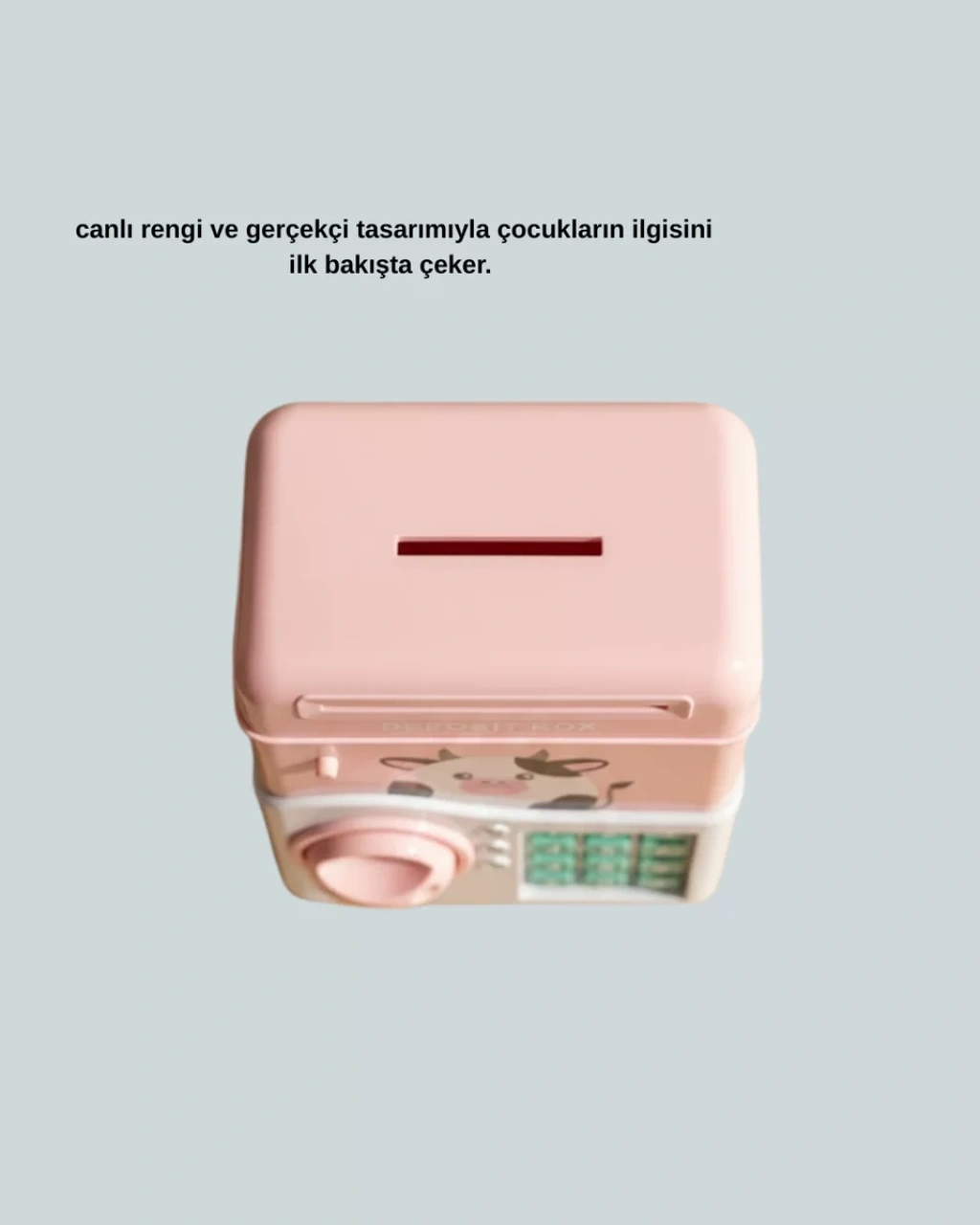 Pembe renkli bu elektronik şifreli ATM kumbarası, çocukların tasarrufu öğrenmesini eğlenceli hale getirir. Otomatik para çekme sistemi ve ışıklı efektleriyle dikkat çeker.Sağlam yapısı sayesinde güvenli kullanım sunar. Eğitici özelliği ile çocuklara para bilinci kazandırır. Özel günler için harika bir hediyedir.