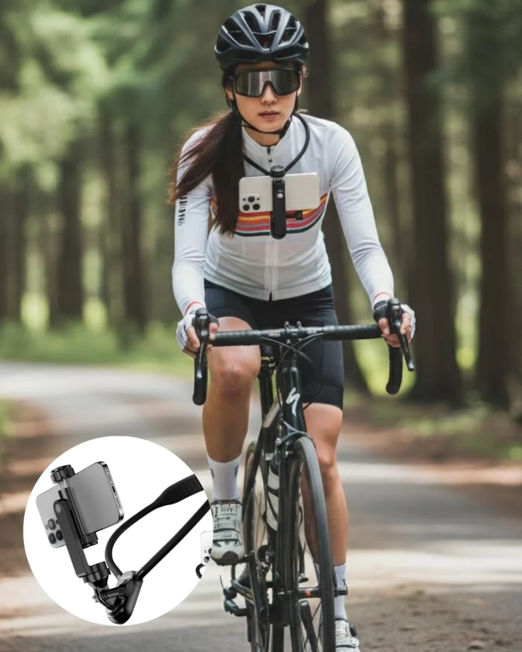Birinci kişi perspektif çekimler için geliştirilen bu boyun askılı telefon tutucu, günlük hayat anlarını eller serbest şekilde kaydetmenizi sağlar. Koşu, bisiklet, seyahat, yemek yapımı veya canlı yayın sırasında stabil görüntü sunar.Esnek boyun tasarımı ergonomik yapıya sahiptir ve kolayca şekil alır. Dayanıklı metal alaşımı gövde, sağlam telefon sabitleme mekanizması ve güçlü kilit sistemi ile güvenli kullanım sunar.Hızlı kurulum özelliği sayesinde saniyeler içinde takılır ve çıkarılır. 360 derece dönebilen başlık sayesinde farklı açılardan çekim yapılabilir.