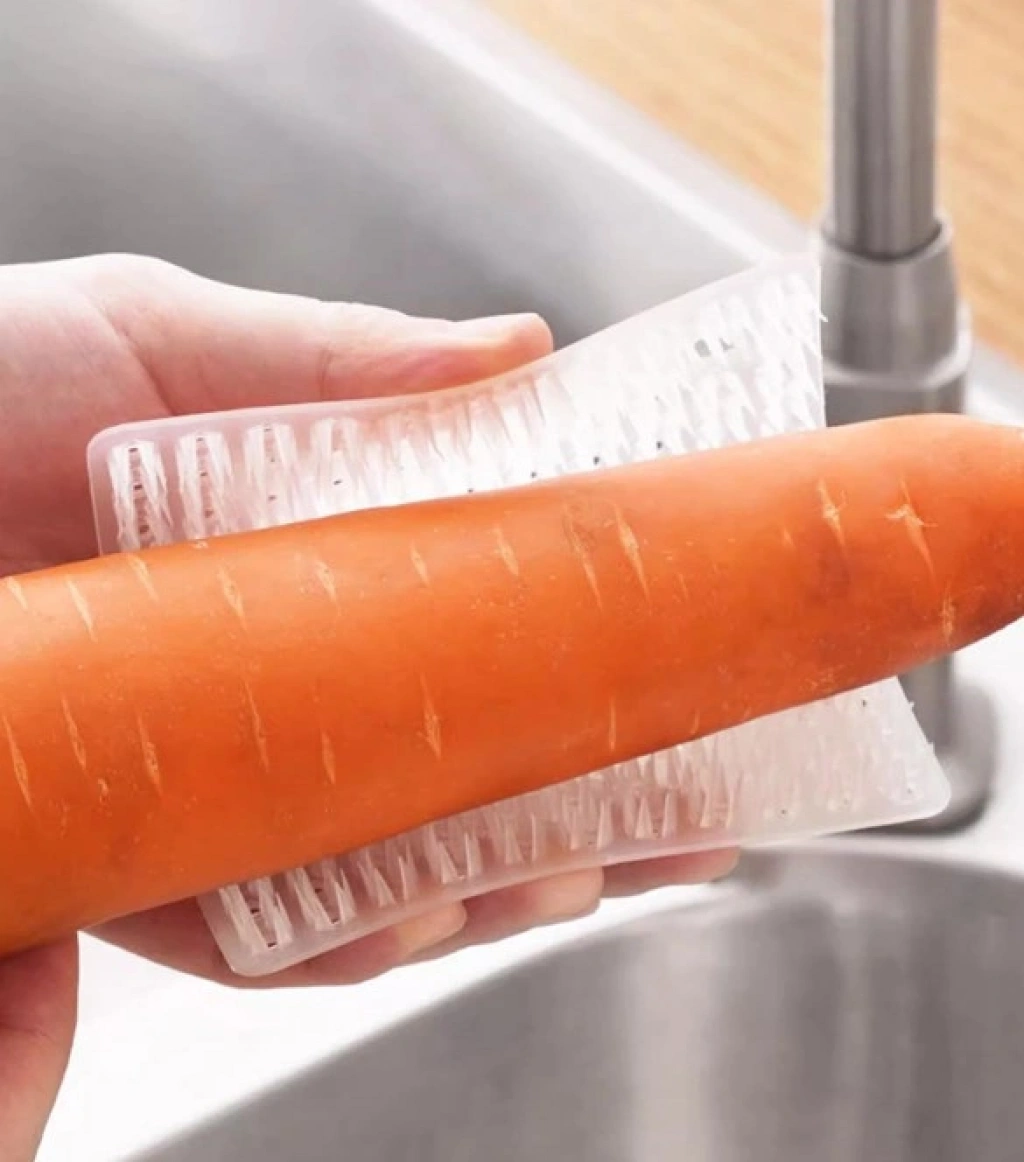 ÇOK AMAÇLI SEBZE VE MEYVE TEMİZLEME PATATES SOYMA FIRÇASIÜrün ÖzellikleriÇok Amaçlı Sebze ve Meyve Temizleme Patates Soyma Fırçası, sebze ve meyveleri nazikçe temizlemek için özel olarak tasarlanmış pratik bir mutfak yardımcısıdır. Şeffaf ve kompakt tasarımı sayesinde kullanım kolaylığı sunarken, patates, havuç, elma gibi yiyecekleri hızlı ve etkili bir şekilde temizler. Dokulu yüzeyi, kir ve kalıntıları hassas bir şekilde temizlerken, sebze ve meyvelerin yüzeyine zarar vermez. Ergonomik yapısı sayesinde ele rahatça oturarak konforlu ve verimli bir kullanım sunar.Paket İçeriği1 Adet Sebze ve Meyve Temizleme Fırçası