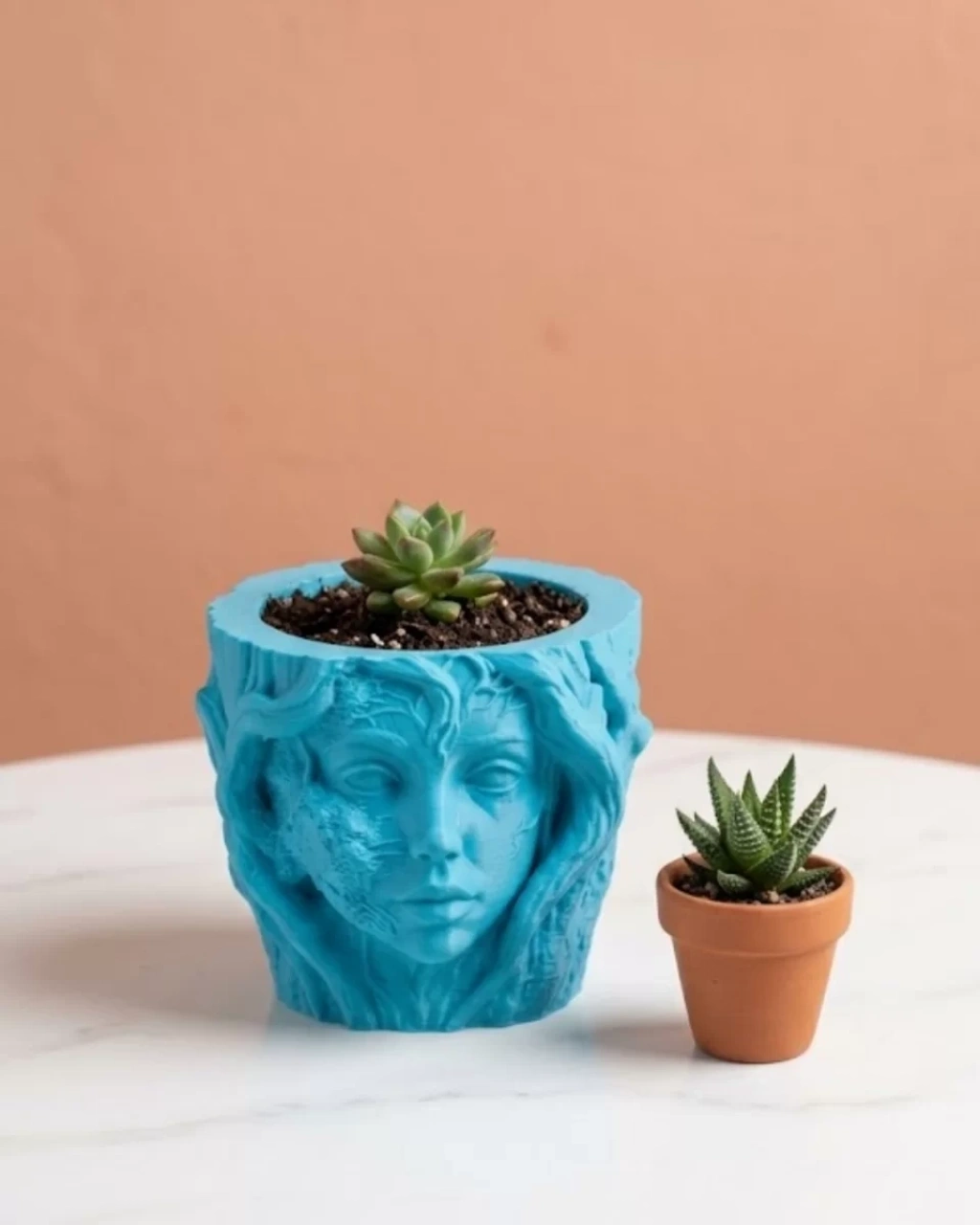 Dekoratif 3D kadın yüzü ağaç tasarımlı vazo, modern ev dekorasyonuna sanatsal bir dokunuş katmak isteyenler için tasarlanmış estetik bir dekor ürünüdür. Heykel formunda tasarlanan bu özel vazo, kadın yüzü figürü ile doğa temalı ağaç dokusunu bir araya getirerek oldukça dikkat çekici ve farklı bir tasarım sunar. Ev, ofis veya çalışma alanlarında dekoratif obje olarak kullanılabilen bu ürün, bulunduğu ortama sanatsal ve modern bir atmosfer kazandırır.3D baskı teknolojisi kullanılarak üretilen bu dekoratif vazo, detaylı yüz hatları ve doğal ağaç dokusunu andıran tasarımıyla oldukça etkileyici bir görünüme sahiptir. Kadın yüzünün bir kısmının ağaç dokusuna dönüşmüş gibi tasarlanması ürüne hem mistik hem de sanatsal bir karakter kazandırır. Bu tasarım sayesinde ürün yalnızca bir vazo veya saksı değil, aynı zamanda dekoratif bir sanat objesi olarak da kullanılabilir.Dekoratif 3D kadın yüzü vazo, küçük bitkiler, sukulentler veya kaktüsler için ideal bir kullanım alanı sunar. Aynı zamanda içi boş yapısı sayesinde kalemlik, masa dekoru veya raf süsü olarak da tercih edilebilir. Modern ev dekorasyonlarında, minimalist salon düzenlerinde veya sanatsal çalışma ortamlarında oldukça şık bir görünüm oluşturur.Bu dekoratif saksı vazo özellikle salon rafları, kitaplıklar, çalışma masaları, televizyon ünitesi veya sehpa üzerinde estetik bir tamamlayıcı obje olarak kullanılabilir. Minimalist, modern, bohem ve sanatsal dekorasyon stilleriyle uyum sağlayan tasarımı sayesinde pek çok farklı dekor konseptine kolaylıkla uyum sağlar.Aynı zamanda dekoratif hediye arayanlar için de oldukça özel bir alternatiftir. Ev hediyesi, yeni ev hediyesi, ofis hediyesi veya sanat severlere verilebilecek anlamlı bir dekoratif ürün olarak tercih edilebilir.Dekoratif 3D kadın yüzü ağaç tasarımlı vazo, hem estetik görünümü hem de çok amaçlı kullanım imkanıyla ev dekorasyonunda fark yaratmak isteyenler için ideal bir dekoratif aksesuardır. Modern tasarım anlayışını sanatsal detaylarla birleştiren bu ürün, bulunduğu ortamda dikkat çeken şık bir dekoratif obje olarak öne çıkar.